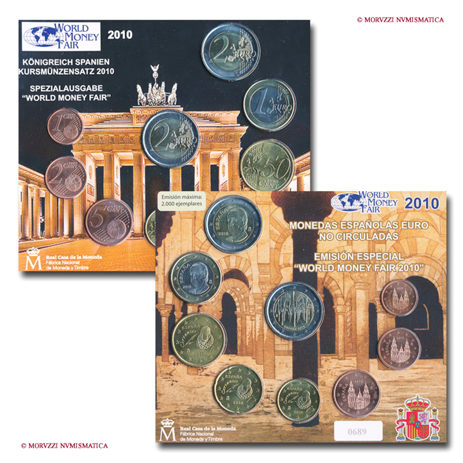 Spagna, serie annuale ufficiale, 9 valori, 2010, World Money Fair Berlin, FDC