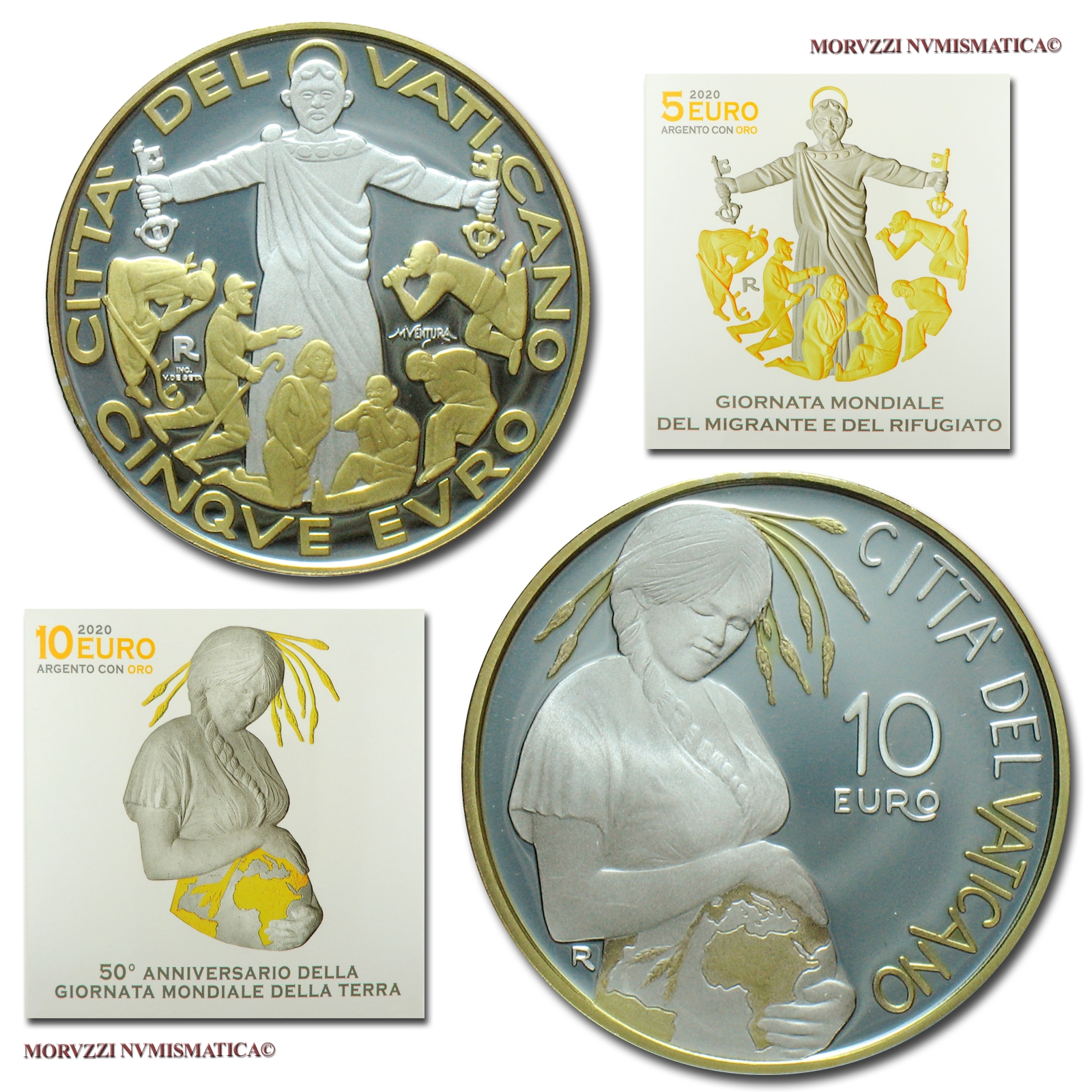 Città del Vaticano, 5 e 10 euro 2020 FS ARGENTO E ORO, Giornata Mondiale del Migrante e del Rifugiato e 50° Anniversario della Giornata Mondiale della Terra / 5 AND 10 EUROS SILVER PROOF (5€ & 10€ commemorative coins - "5 euro" e "10 euro" commemorativi)