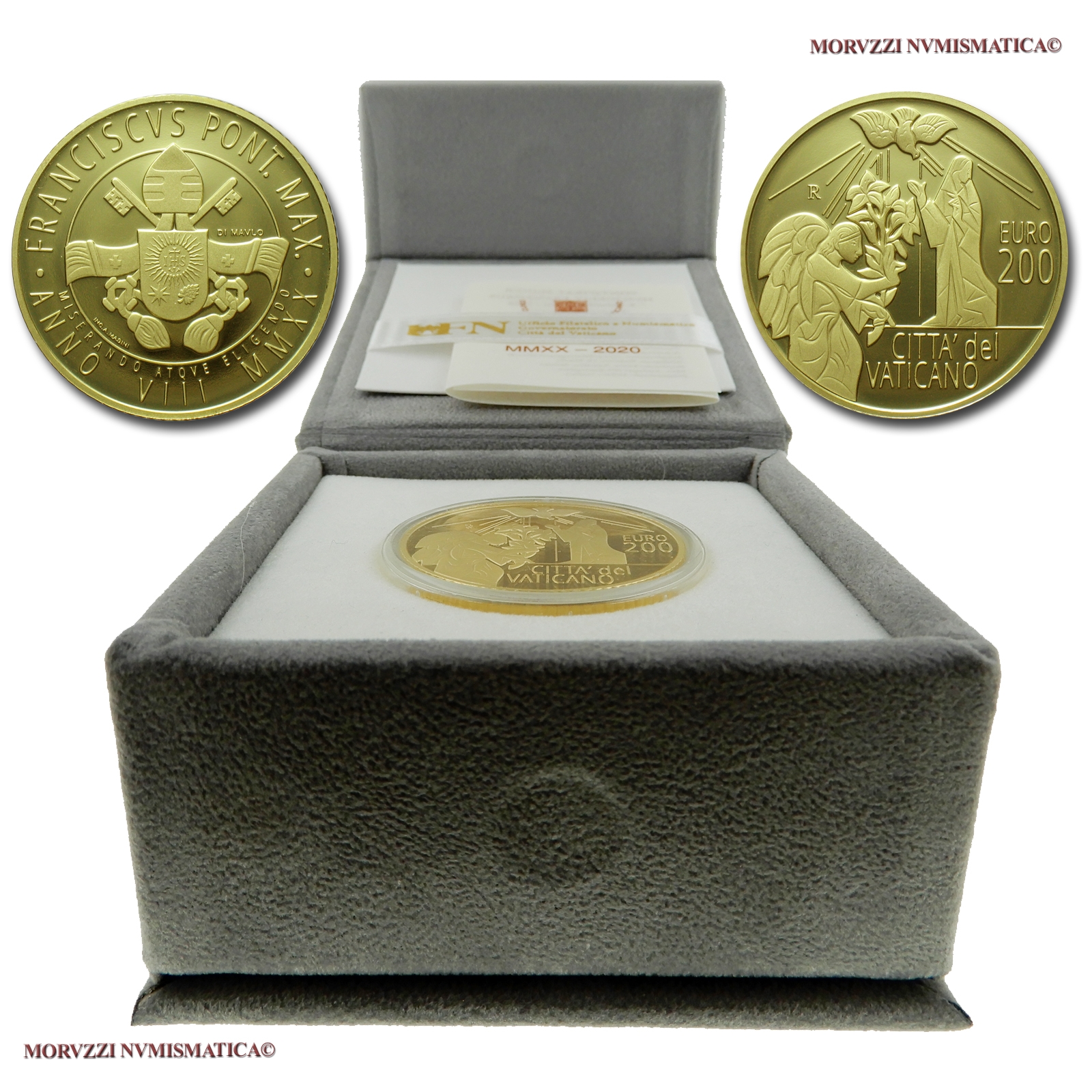 Città del Vaticano, 200 EURO 2020 FS, Arcangelo Gabriele, ORO moneta di Papa Francesco 200 EUROS GOLD PROOF (200€ commemorative coins - "200 euro" commemorativi - monete vaticane commemorative d'oro) Goldmünzen auf dem Vatikanstadt - OFFERTA SPECIALE