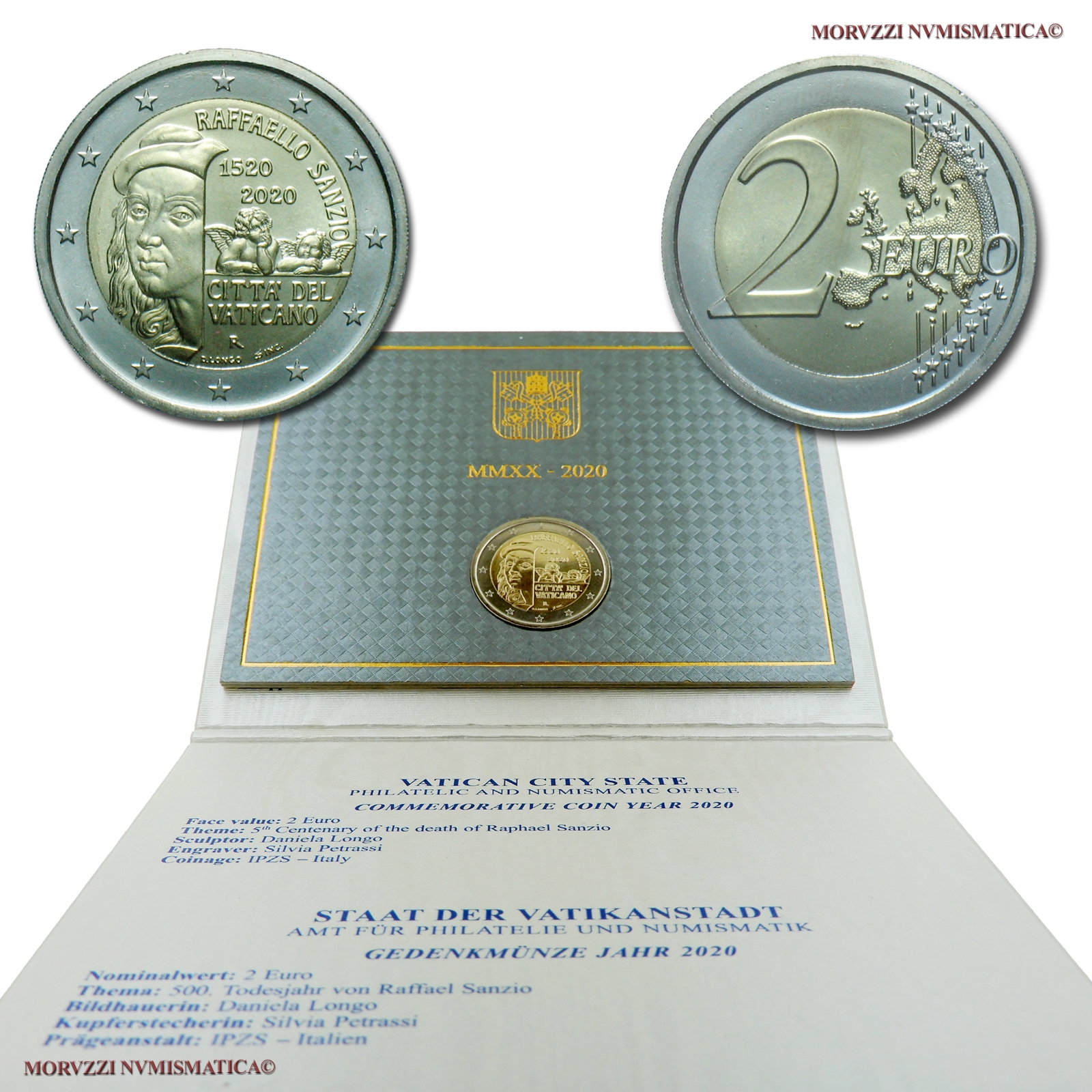 Città del Vaticano, 2 euro 2020 FDC, V centenario della Morte di Raffaello Sanzio / monete vaticane di Papa Francesco (2 EUROS BU - 2€ commemorative coins - "2 euro" commemorativi da collezione - moneta commemorativa da due euro) Stempelglanz