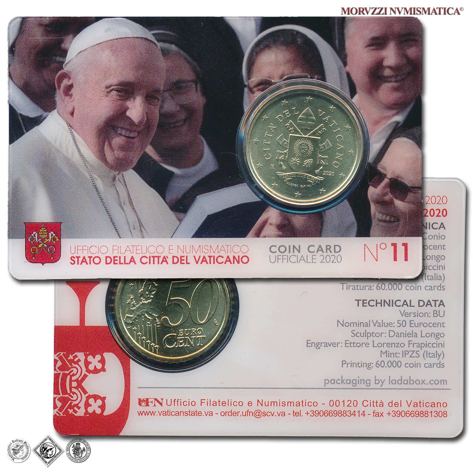 Città del Vaticano, FRANCESCO I, Bergoglio, 50 CENTESIMI 2020 FDC, COIN CARD UFFICIALE N° 11 / monete vaticane di Papa Francesco I Bergoglio (50 eurocent BU)