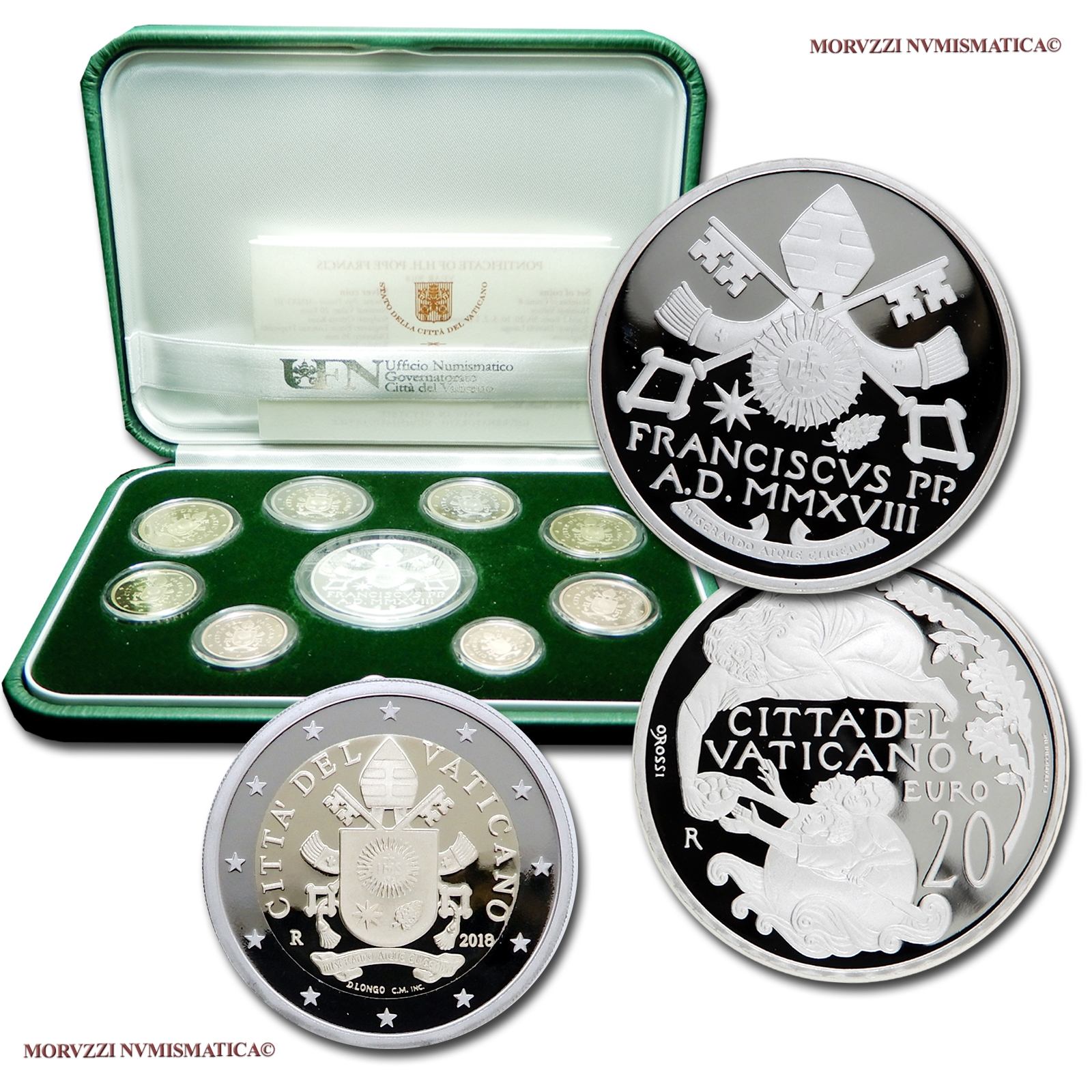 Città del Vaticano, SERIE DIVISIONALE 2018 FS + 20 Euro in argento, 9 valori / SERIE DIVISIONALI EURO PROOF "serie divisionale"