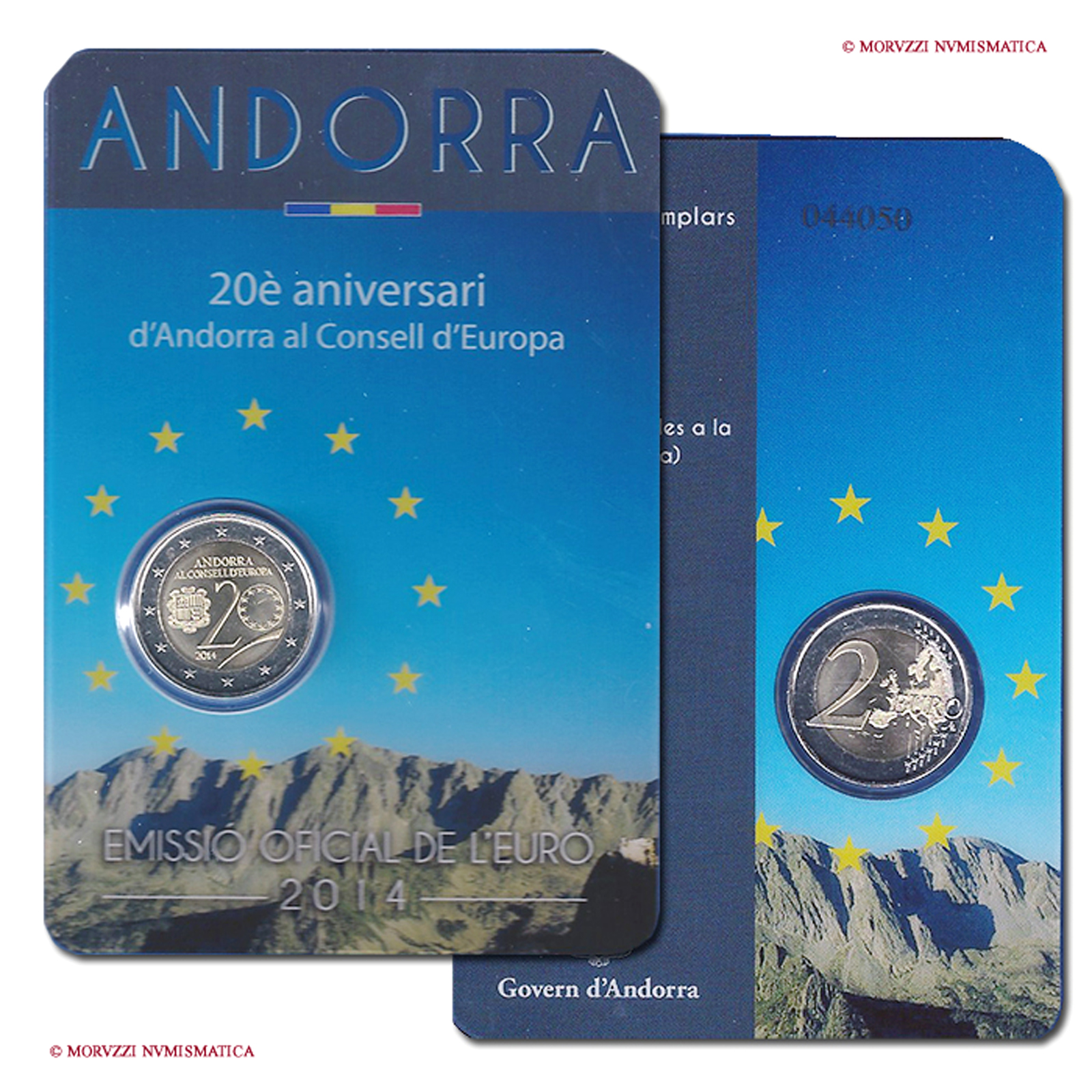 Andorra, 2 euro, 2014, 20° anniv. di Andorra nel Consiglio di Europa, FDC