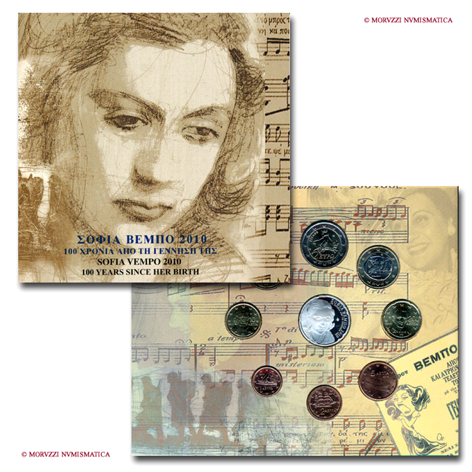 Grecia, serie annuale ufficiale, 9 valori, Sofia Vempo, 2010, FDC