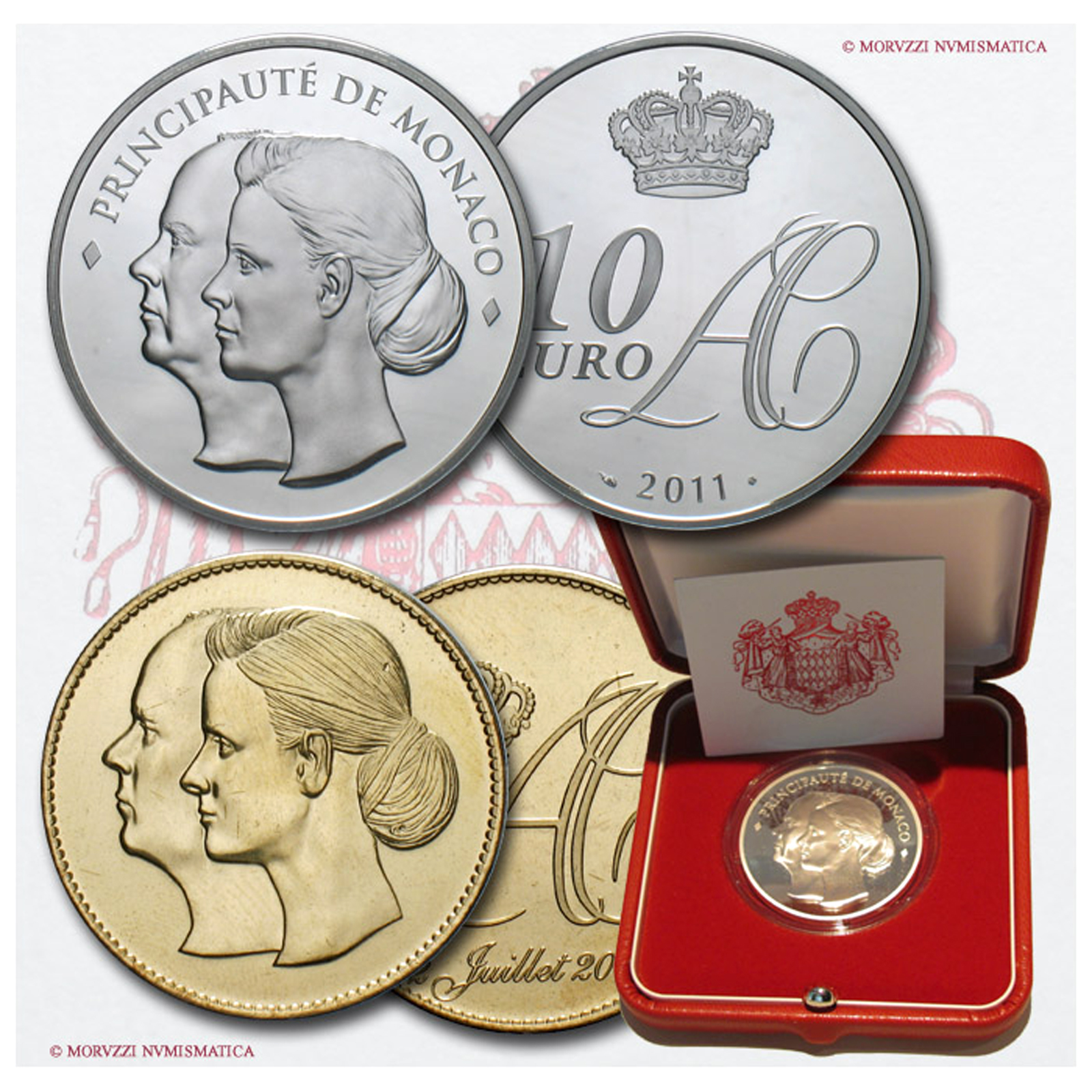 Monaco, 10 euro, 2011, Nozze del Principe, Belle Epreuve, con gettone omaggio, OFFERTA SPECIALE