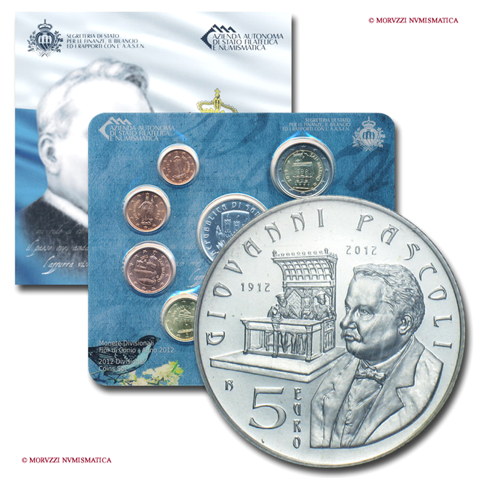 San Marino, REPUBBLICA, SERIE di 9 VALORI, 100° morte Giovanni Pascoli, 2012