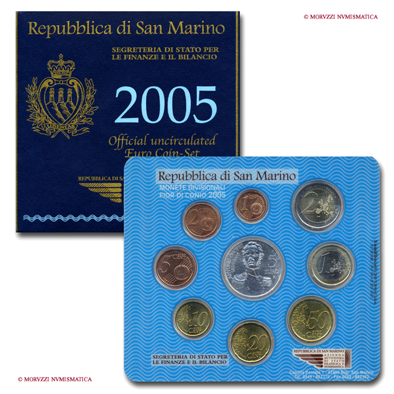 Repubblica di San Marino, serie annuale ufficiale, 9 valori, 2005, FDC
