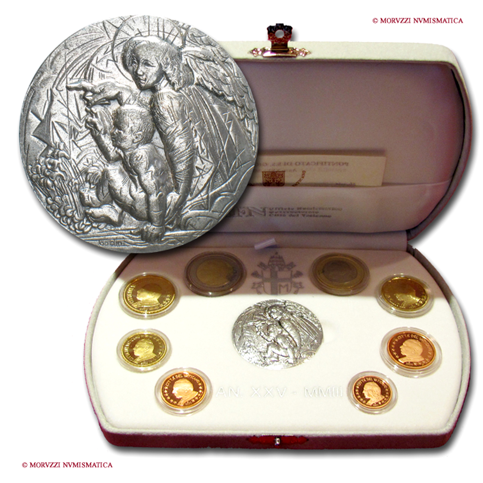 Città del Vaticano, GIOVANNI PAOLO II, Wojtyla, serie annuale ufficiale, 8 valori + medaglia AR, 2003 anno XXV, FS - OFFERTA SPECIALE