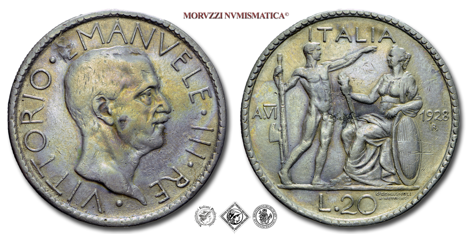 Regno d'Italia, VITTORIO EMANUELE III, LIRE 20 FALSO, Littore - FALSO d'epoca, 1928 A VI, Zecca di Roma, ARGENTO, MB, (R), (Pagani 673) / monete italiane moderne rare (moneta italiana moderna rara d'argento - Casa Savoia)