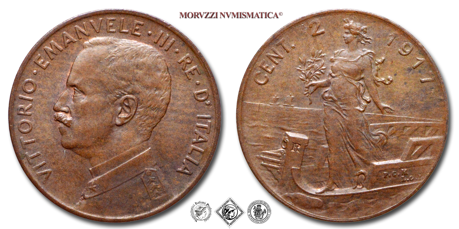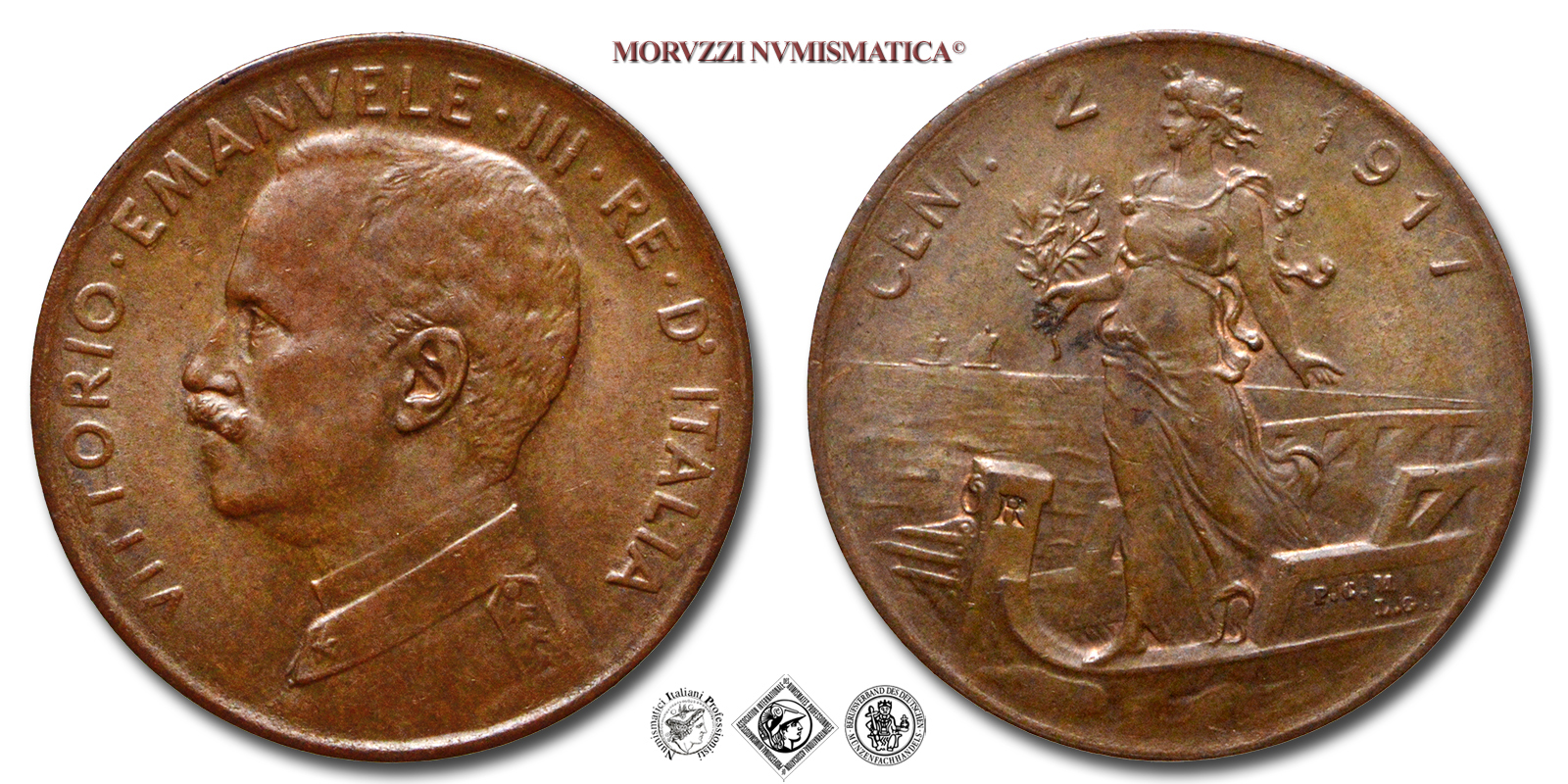 Regno d'Italia, VITTORIO EMANUELE III, CENTESIMI 2, Italia su prora, 1917, Zecca di Roma, RAME, qFDC, (Pagani 939) / monete italiane moderne (moneta italiana moderna da collezione - Casa Savoia)
