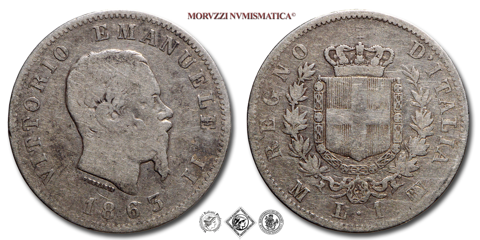 Regno d'Italia, VITTORIO EMANUELE II, LIRA, Stemma, 1863 M, Zecca di Milano, ARGENTO, B, (Pagani 514) / monete italiane moderne d'argento (moneta italiana moderna - Casa Savoia)