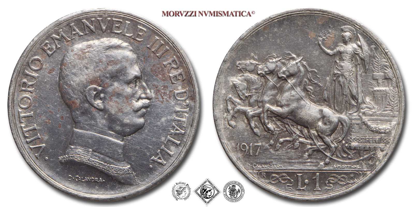 Regno d'Italia, VITTORIO EMANUELE III, LIRA, Quadriga briosa, 1917, Zecca di Roma, ARGENTO, mBB, (Pagani 775) / monete italiane moderne d'argento (moneta italiana moderna da collezione - Casa Savoia)