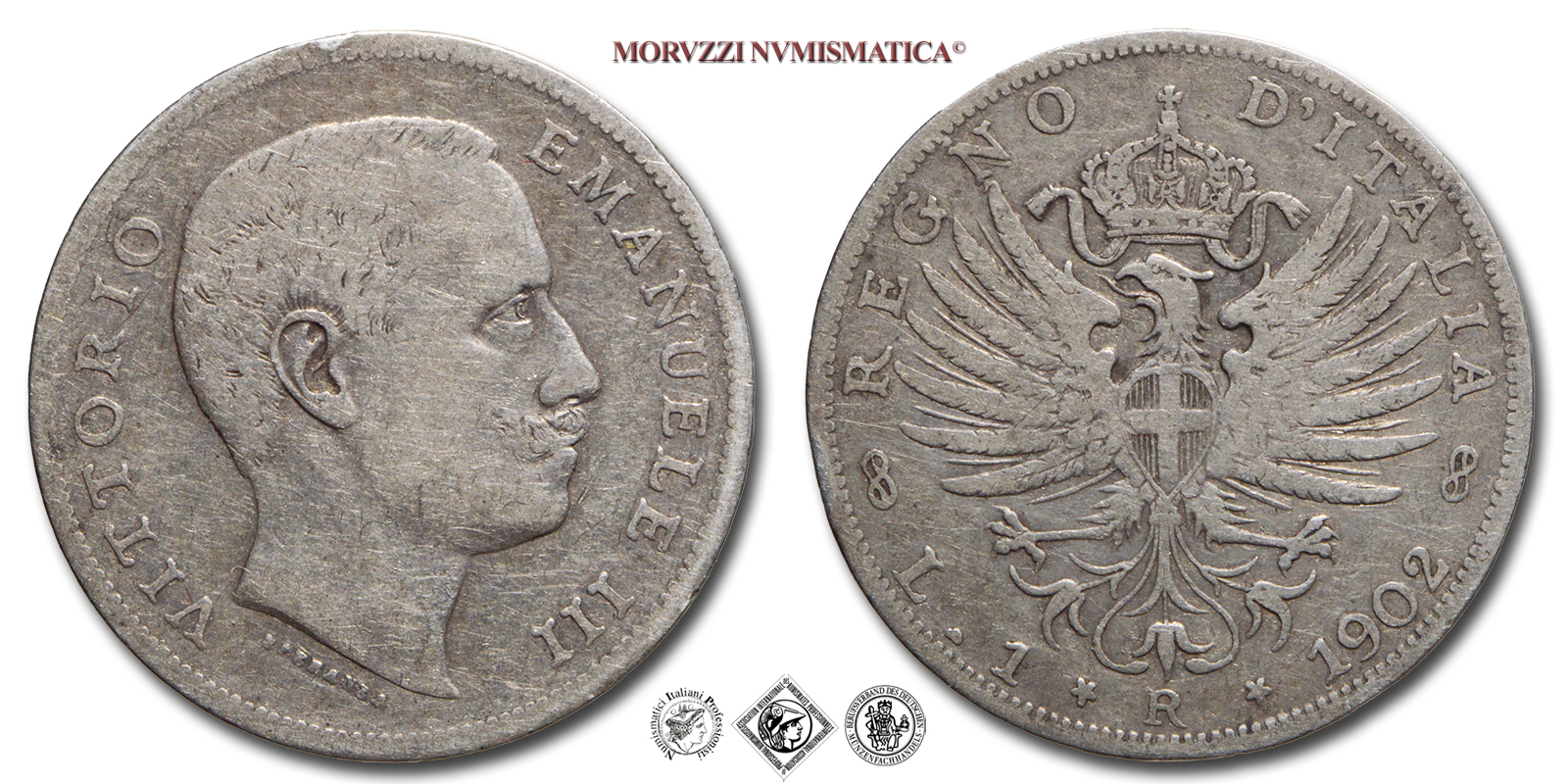 Regno d'Italia, VITTORIO EMANUELE III, LIRA, Aquila Sabauda, 1902, Zecca di Roma, ARGENTO, MB, (Pagani 764) / monete italiane moderne d'argento (moneta italiana moderna da collezione - Casa Savoia)