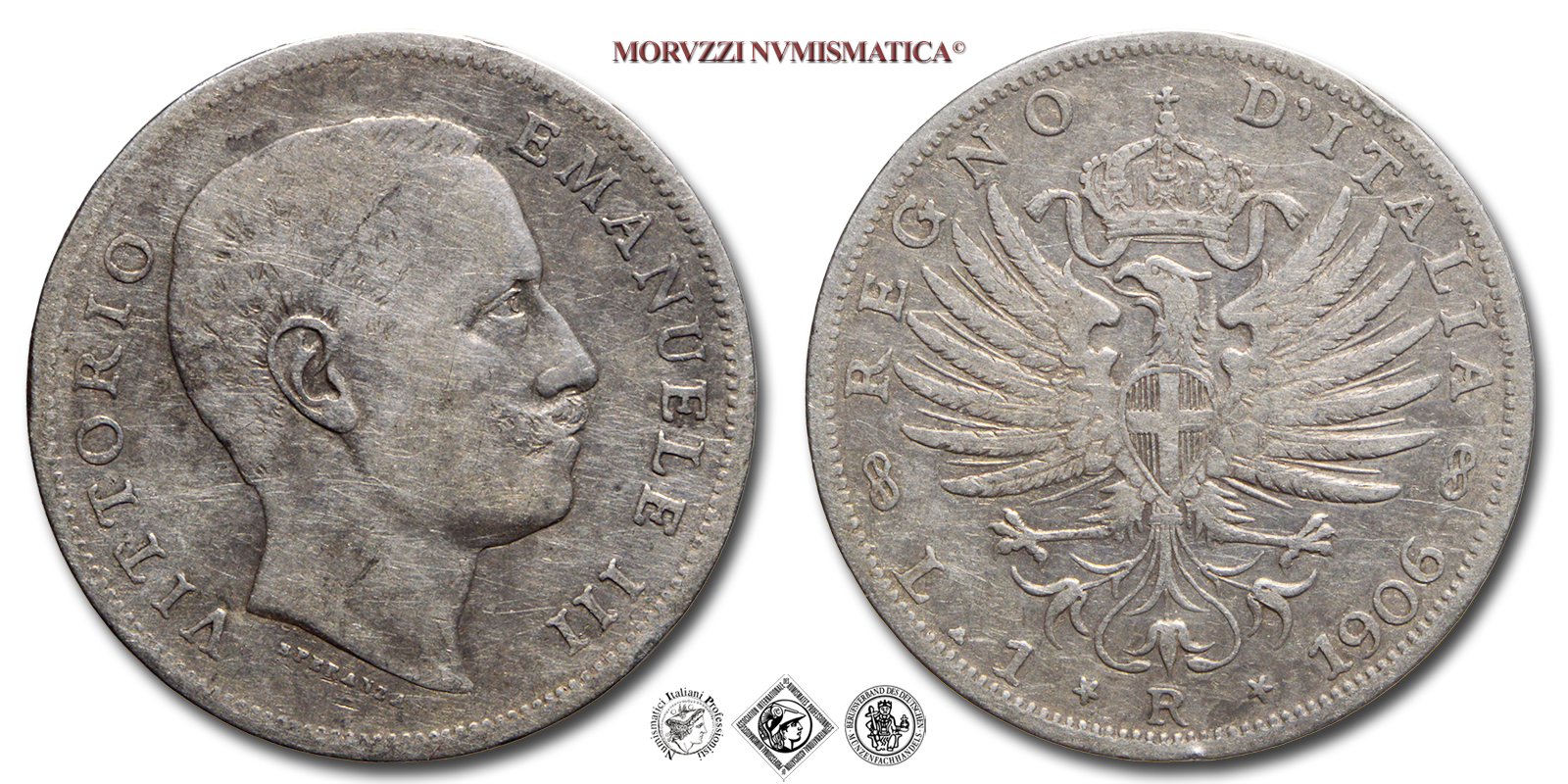 Regno d'Italia, VITTORIO EMANUELE III, LIRA, Aquila Sabauda, 1906, Zecca di Roma, ARGENTO, BB, (Pagani 766) / monete italiane moderne d'argento (moneta italiana moderna da collezione - Casa Savoia)