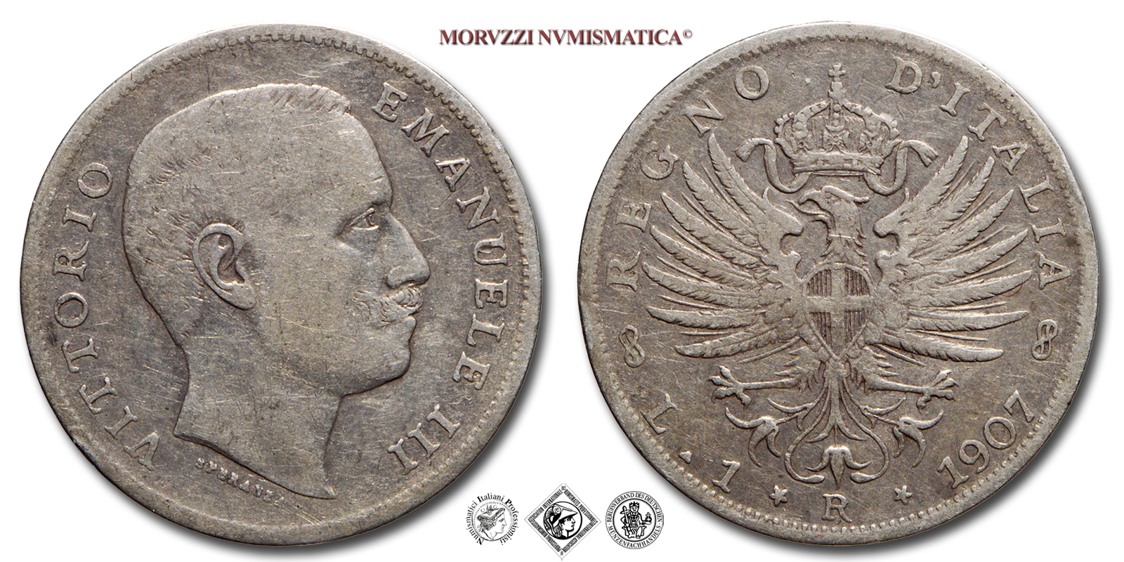 Regno d'Italia, VITTORIO EMANUELE III, LIRA, Aquila Sabauda, 1907, Zecca di Roma, ARGENTO, BB, (Pagani 767) / monete italiane moderne d'argento (moneta italiana moderna da collezione - Casa Savoia)