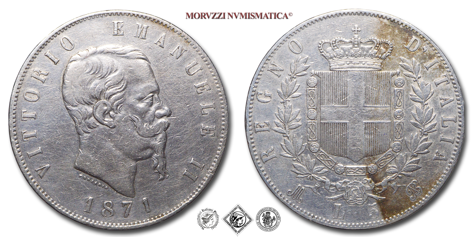 Regno d'Italia, VITTORIO EMANUELE II, LIRE 5 (SCUDO), 1871 M, Zecca di Milano, ARGENTO, BB, (Pagani 492) / monete italiane moderne (moneta italia moderna d'argento - scudi da collezione - Casa Savoia)