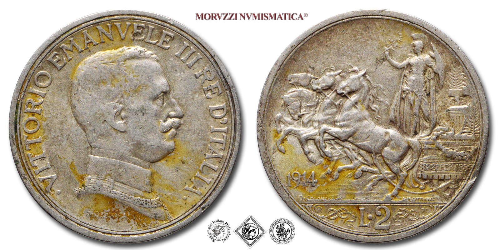 Regno d'Italia, VITTORIO EMANUELE III, LIRE 2, Quadriga briosa, 1914, Zecca di Roma, ARGENTO, BB, (Pagani 737) / monete italiane moderne d'argento (moneta italiana moderna da collezione - Casa Savoia)