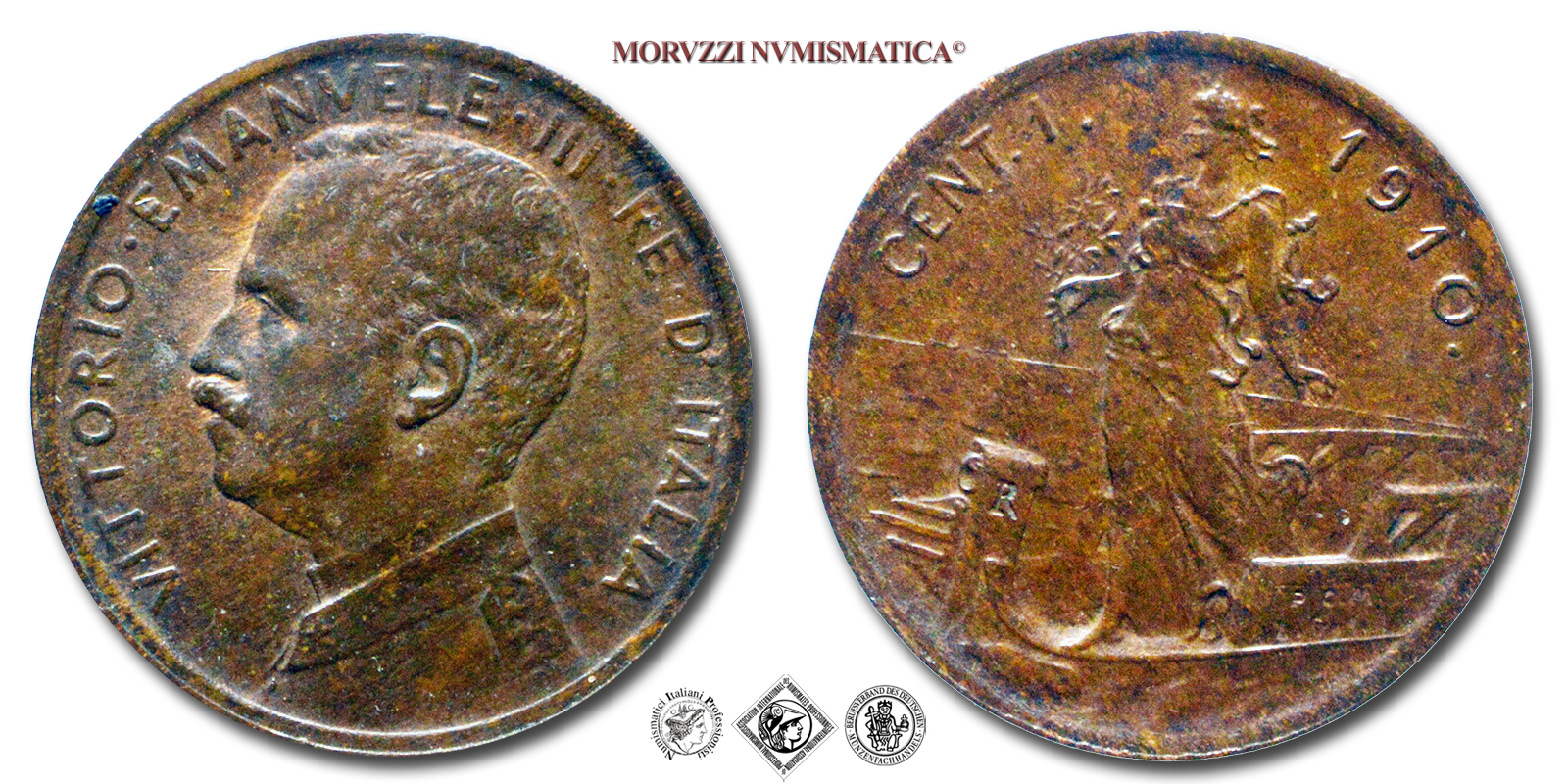Regno d'Italia, VITTORIO EMANUELE III, CENTESIMO, Italia su prora, 1910, Zecca di Roma, RAME, qFDC, (Pagani 947) / monete italiane moderne (moneta italiana moderna da collezione - Casa Savoia)