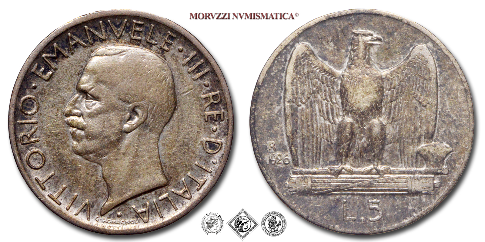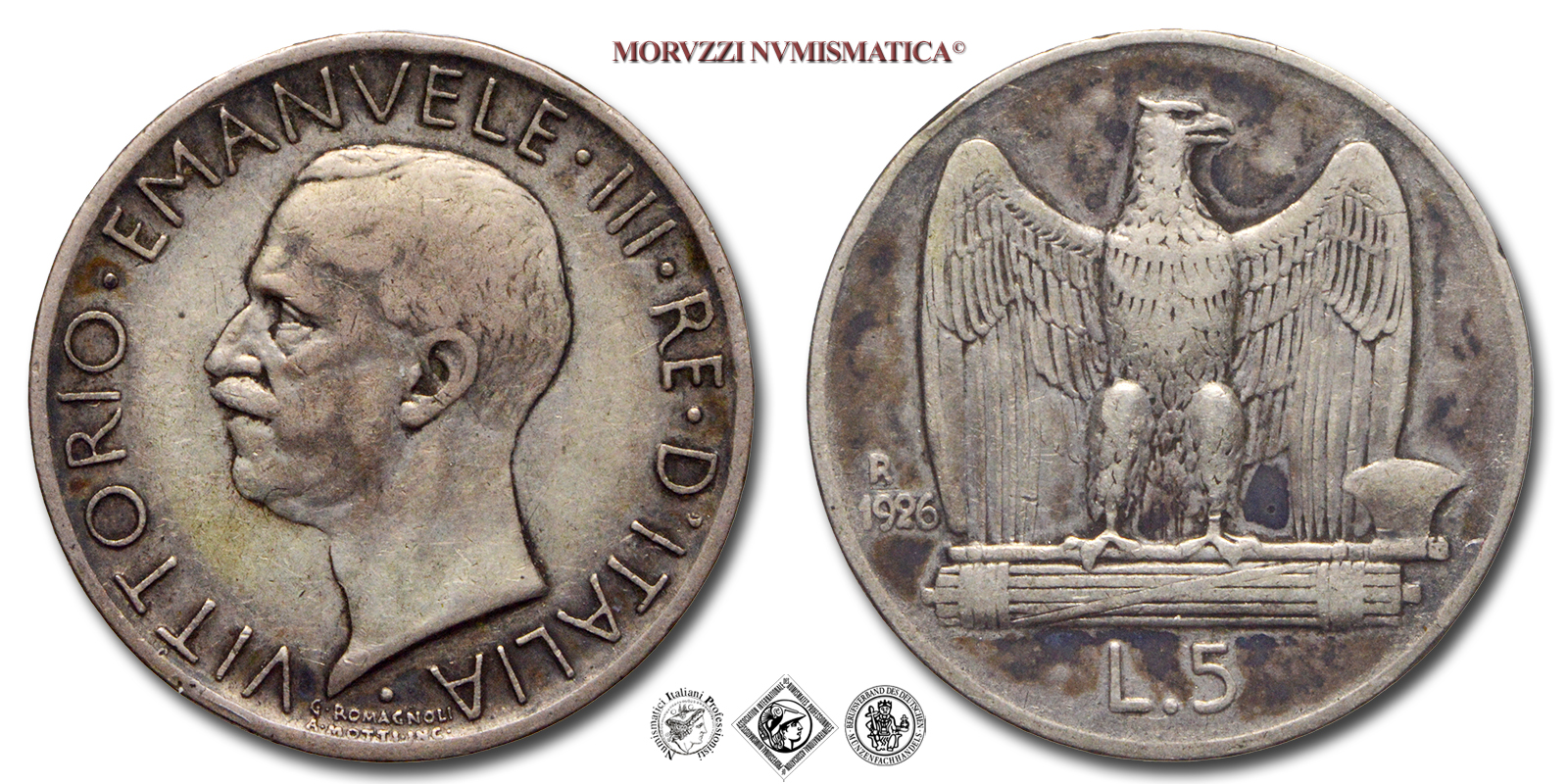 Regno d'Italia, VITTORIO EMANUELE III, LIRE 5, 1926, Aquilotto (Aquilino), Zecca di Roma, ARGENTO, BB, (R), (Pagani 709) / monete italiane moderne rare d'argento (moneta italiana moderna rara da collezione - Casa Savoia)