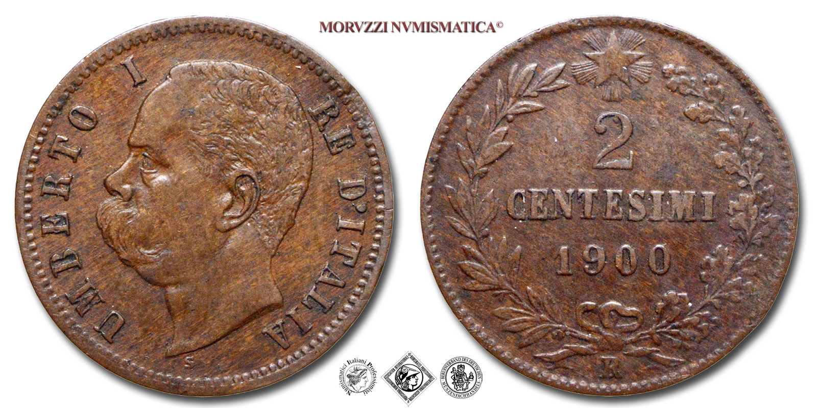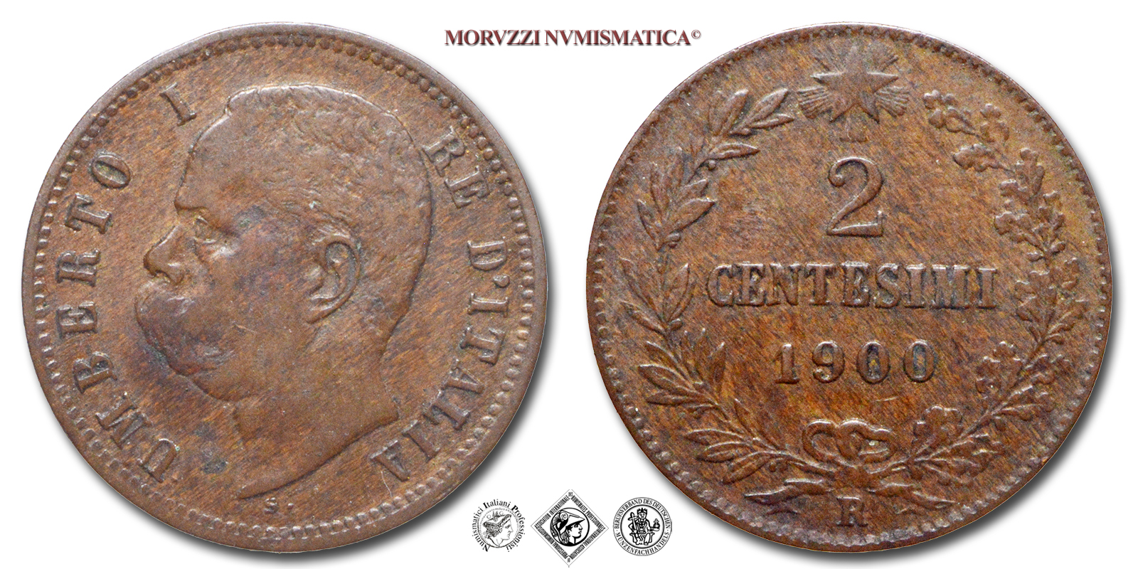 Regno d'Italia, UMBERTO I, CENTESIMI 2, Valore, 1900, Zecca di Roma, RAME, mBB, (Pagani 624) / monete italiane moderne (moneta italiana moderna da collezione - Casa Savoia)