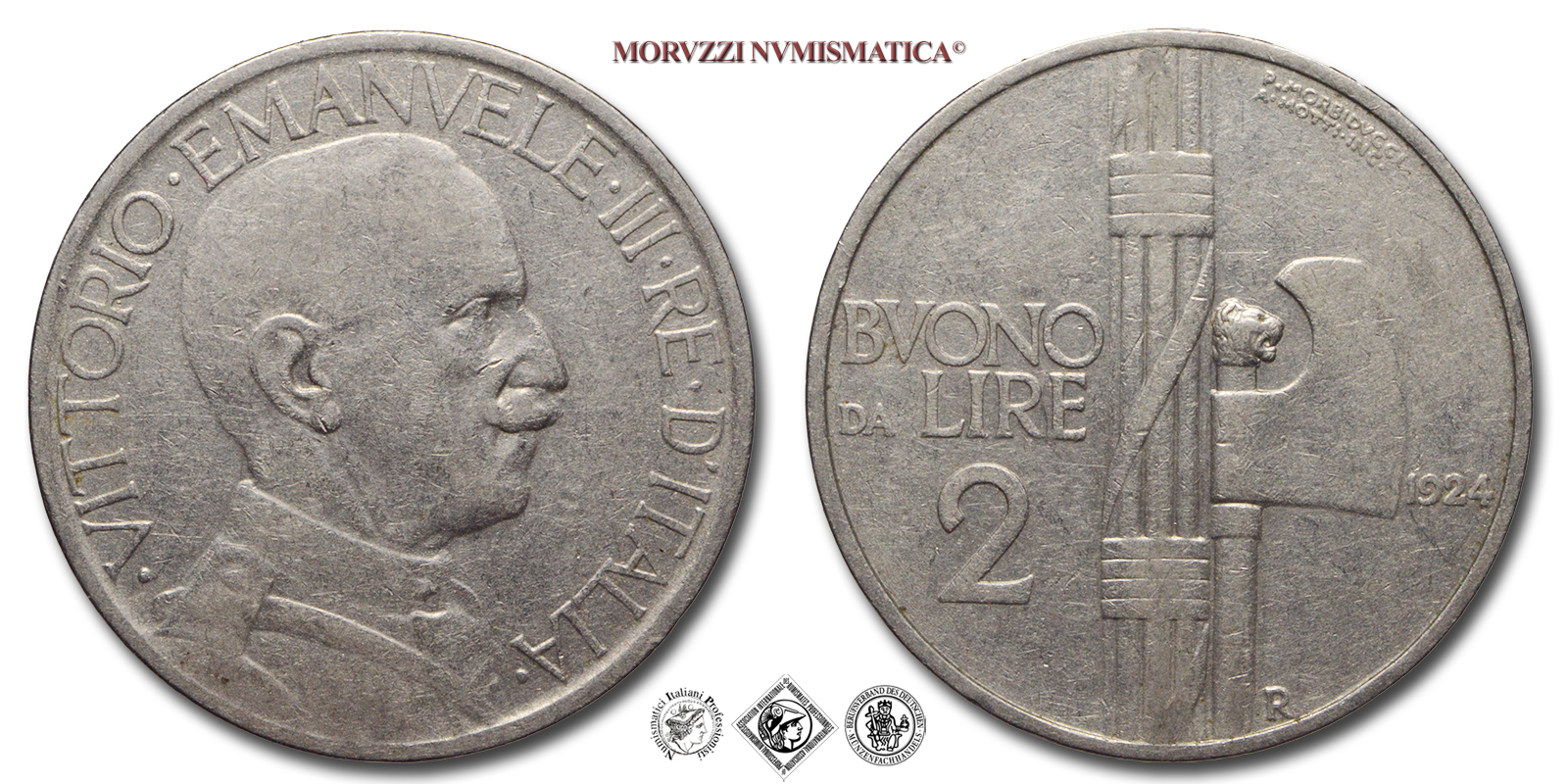 Regno d'Italia, VITTORIO EMANUELE III, BUONO DA LIRE 2, Fascio, 1924, Zecca di Roma, NICHEL, BB, (Pagani 742) / monete italiane moderne (moneta italiana moderna da collezione - Casa Savoia)