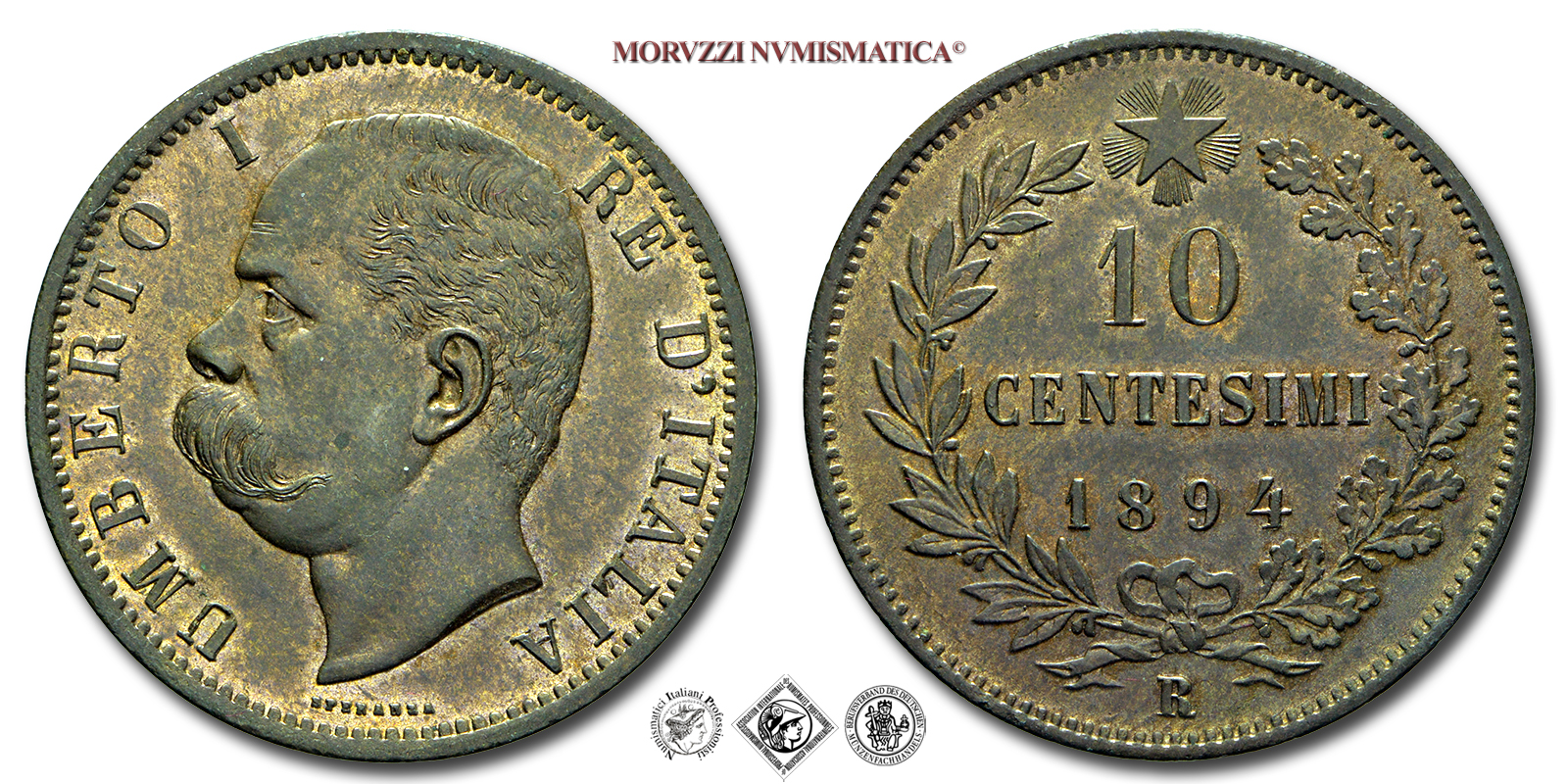 Regno d'Italia, UMBERTO I, 10 CENTESIMI, 1894 R, Zecca di Roma, RAME, FDC, (R), (Pagani 615) / monete italiane moderne rare (moneta italiana moderna rara da collezione - Casa Savoia)