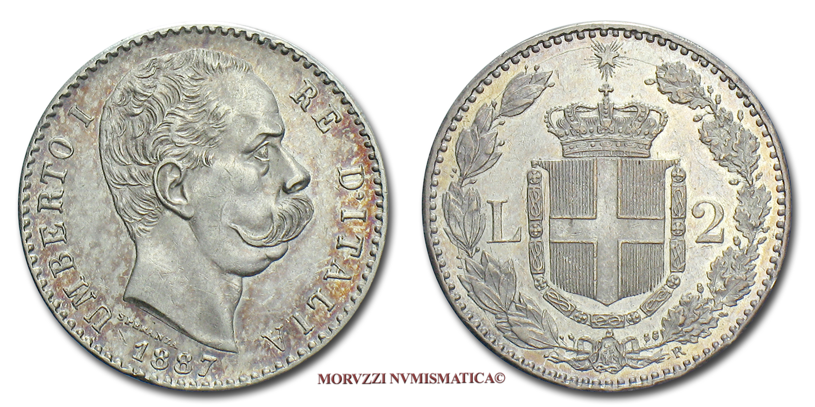 Regno d'Italia, UMBERTO I, LIRE 2, 1887