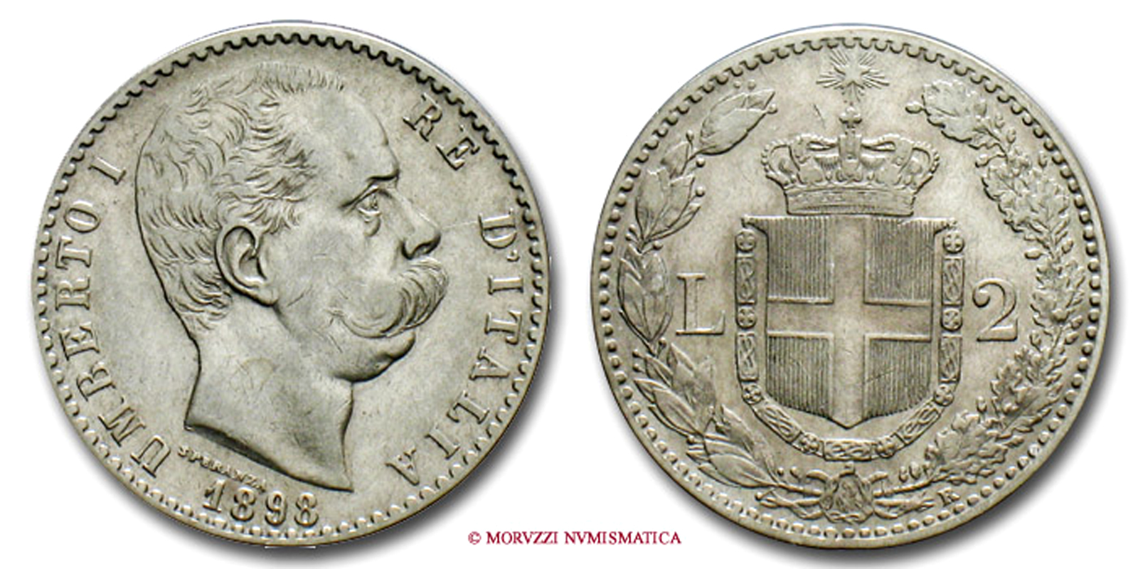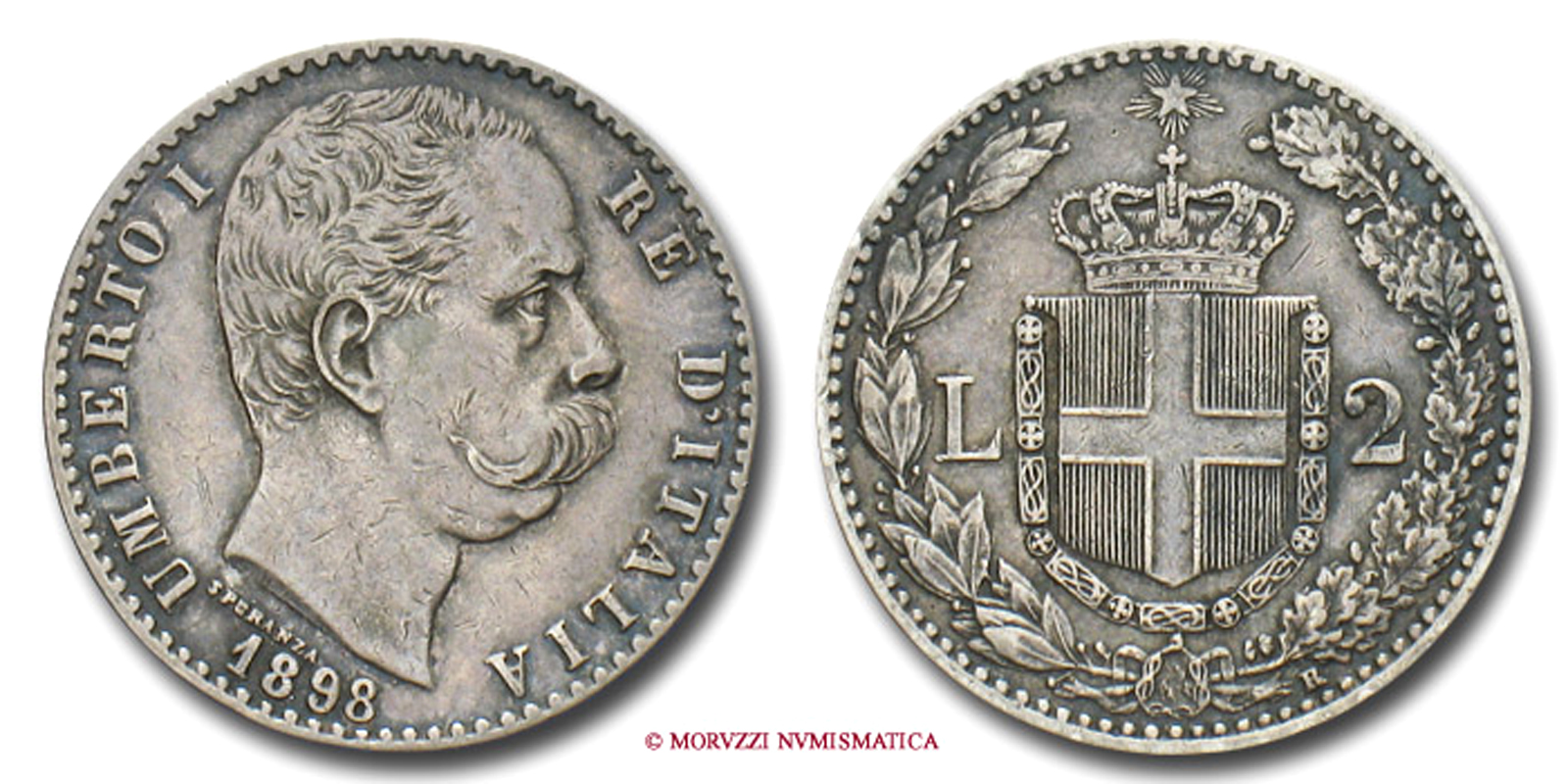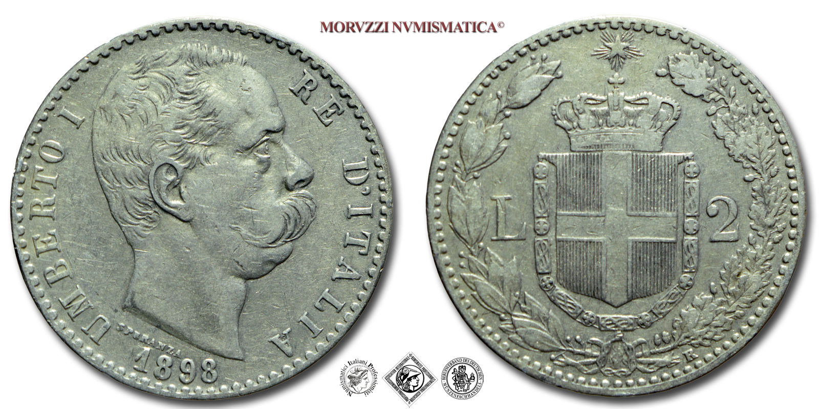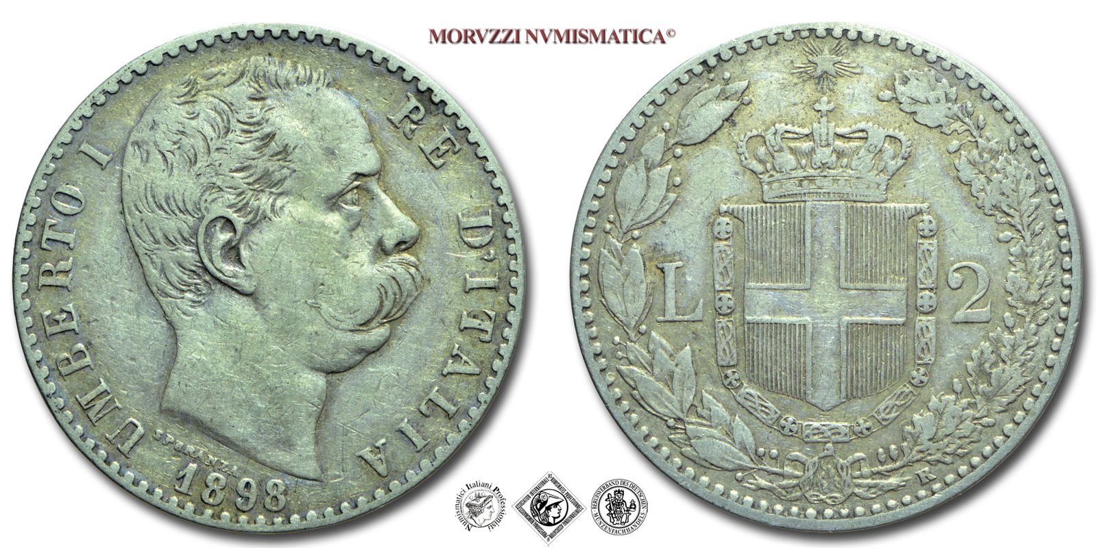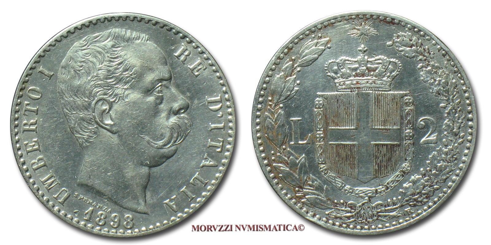 Regno d'Italia, UMBERTO I 1878-1900, LIRE 2, 1898