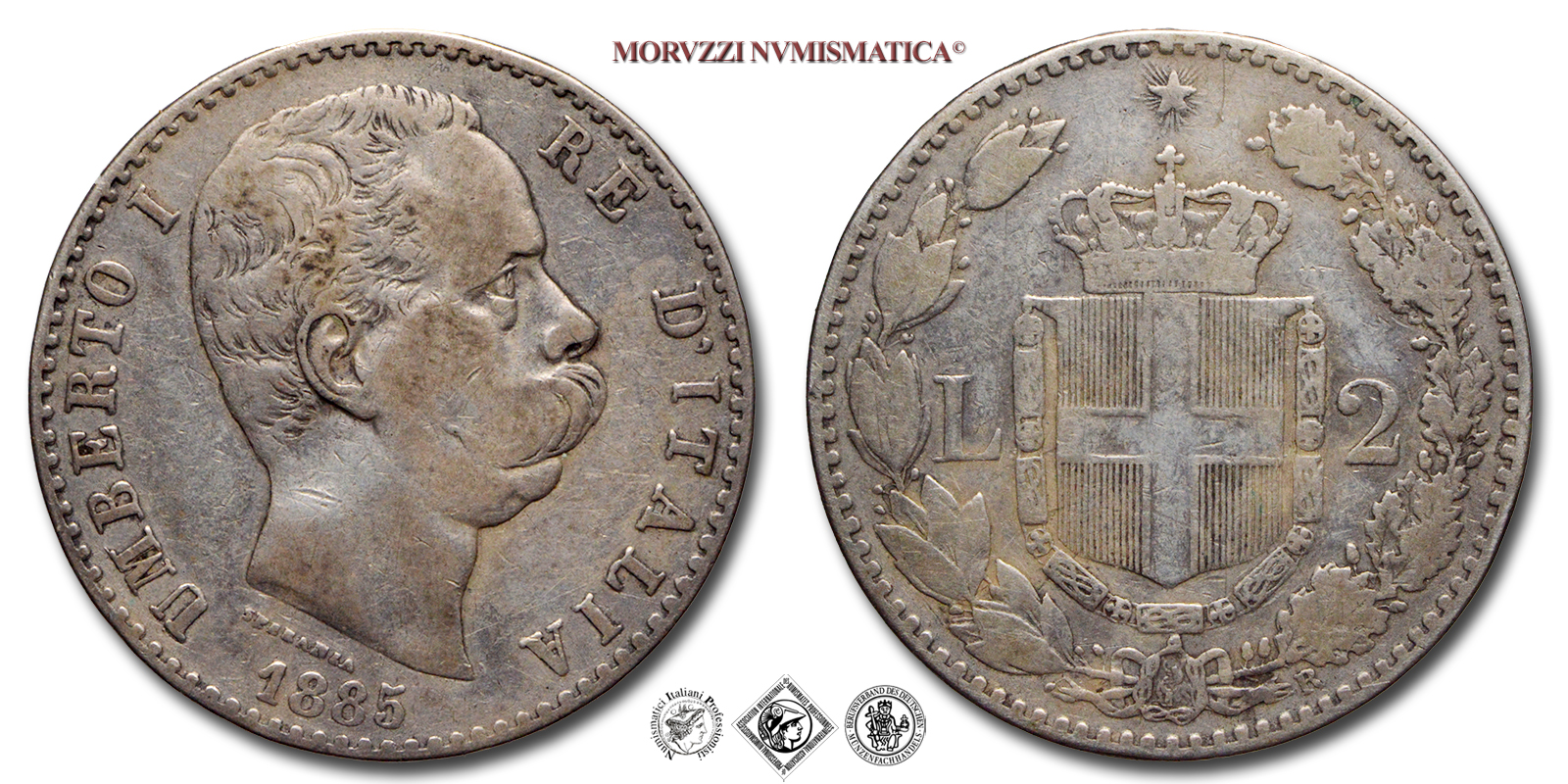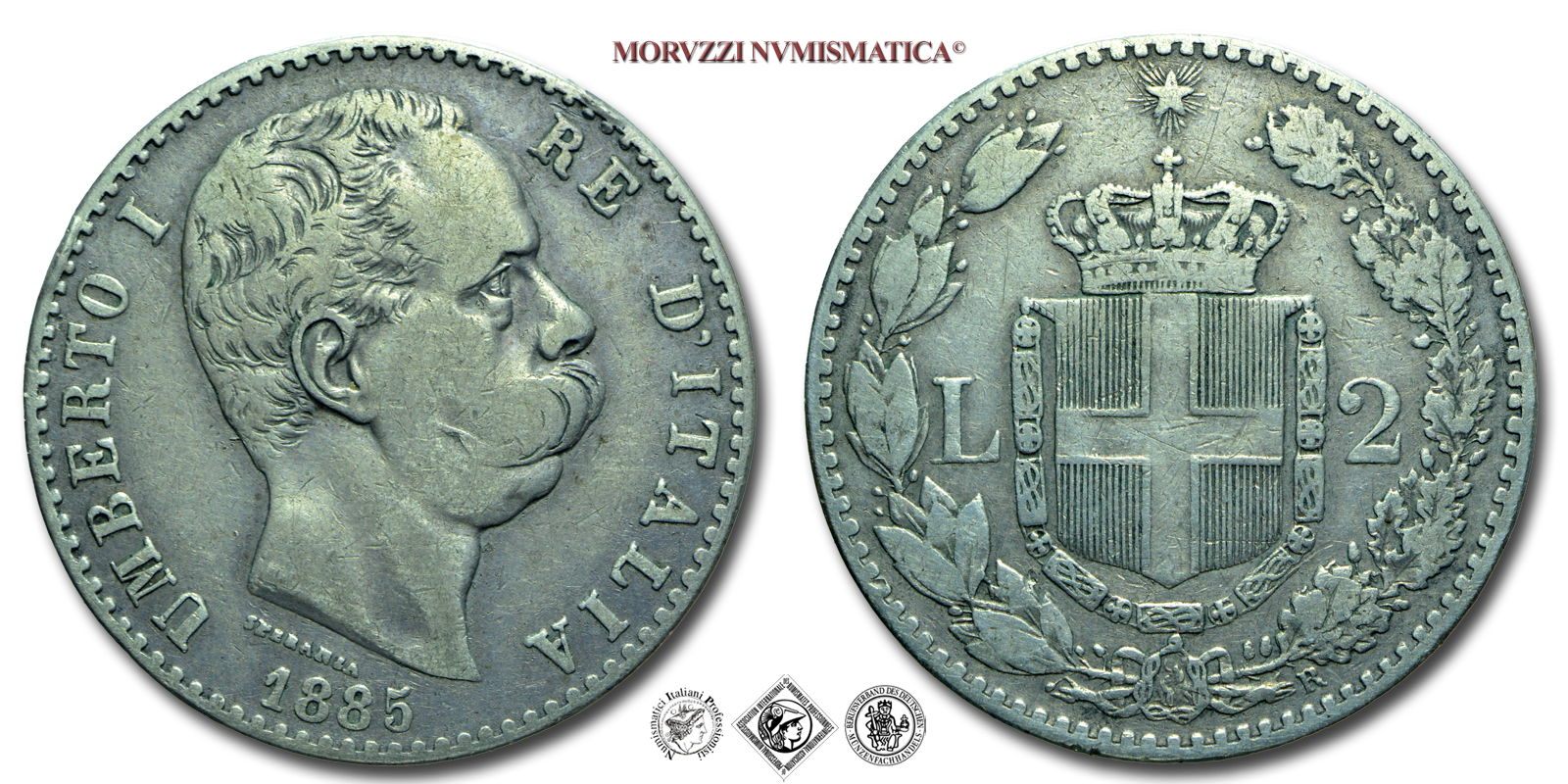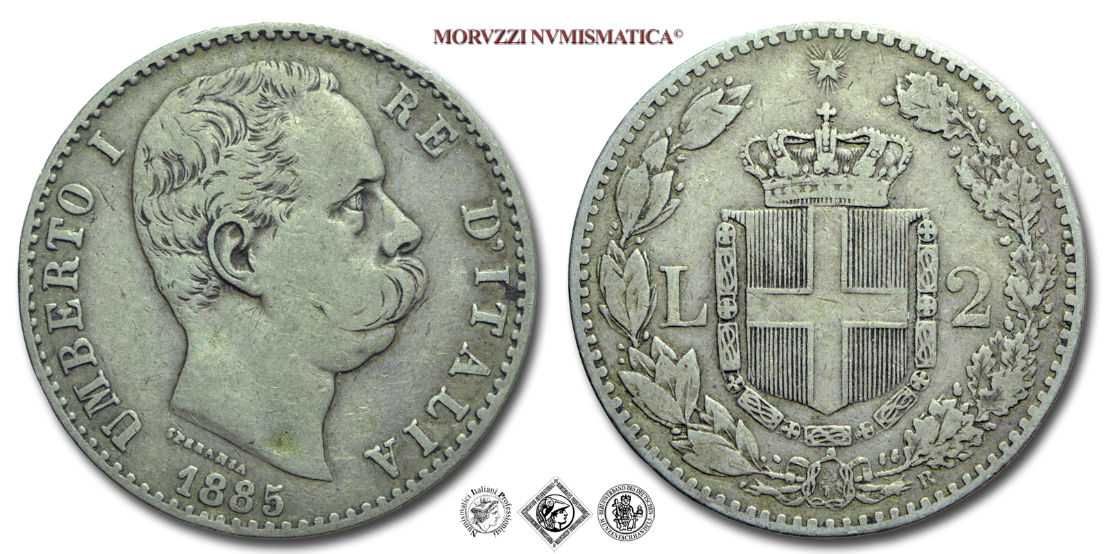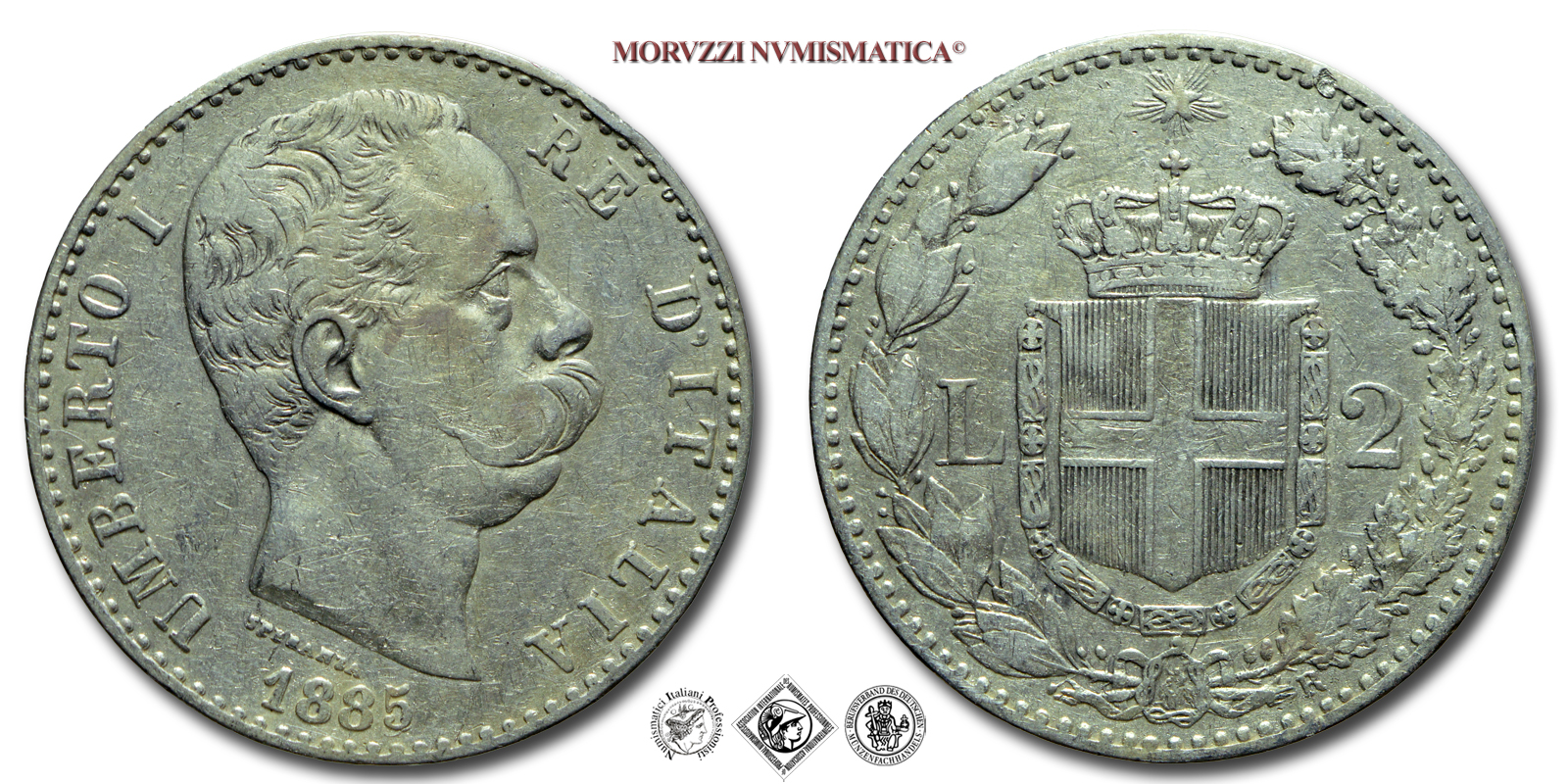 Regno d'Italia, UMBERTO I, 2 LIRE, 1885, Zecca di Roma, ARGENTO, BB, (RR), (Pagani 595) / monete italiane moderne rare d'argento (moneta italiana moderna rara da collezione - Casa Savoia)