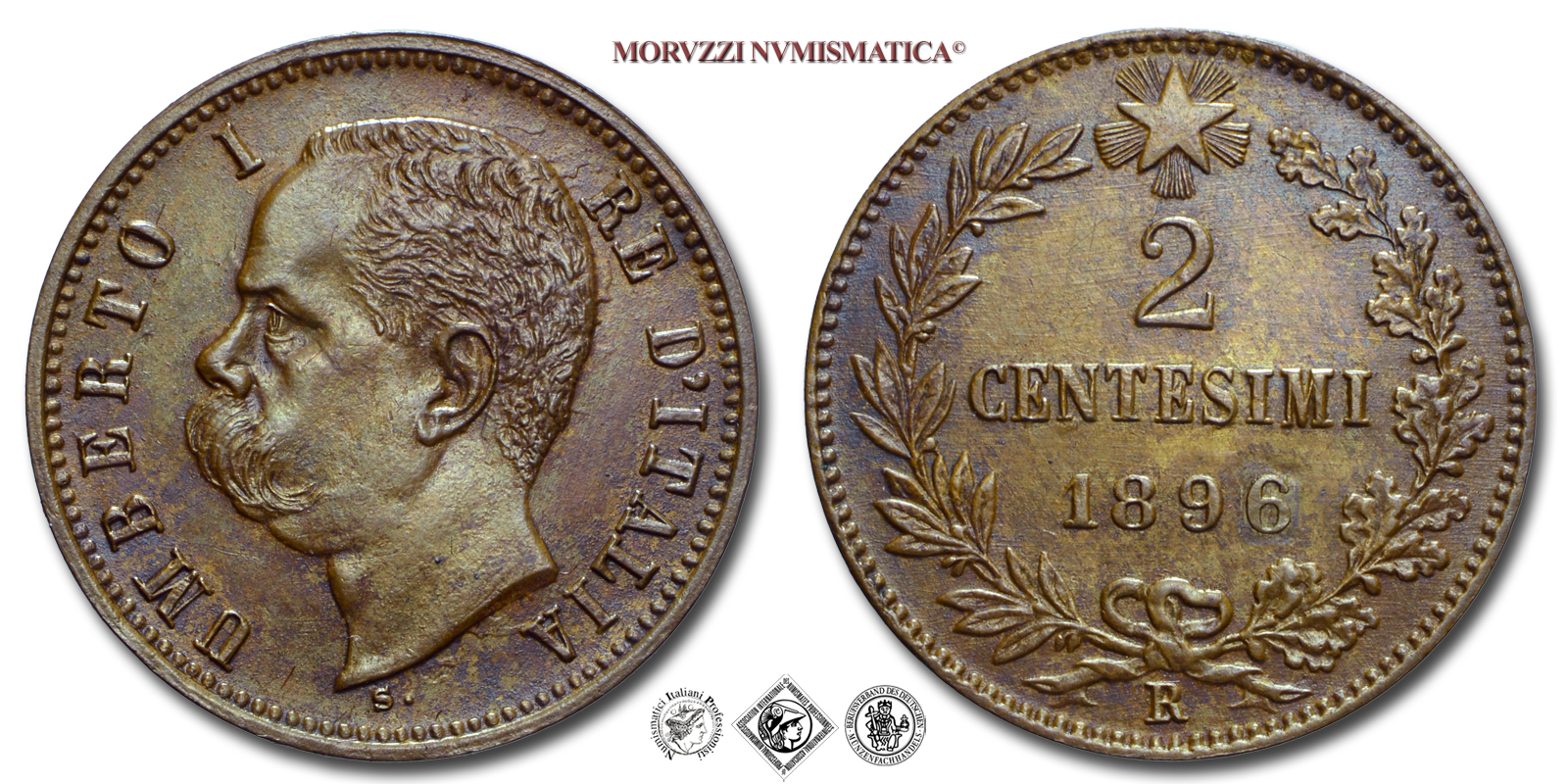 Regno d'Italia, UMBERTO I, CENTESIMI 2, 1896, Zecca di Roma, RAME, SPL, (RR), (Pagani 621) / monete italiane moderne rare (moneta italiana moderna rara da collezione - Casa Savoia)