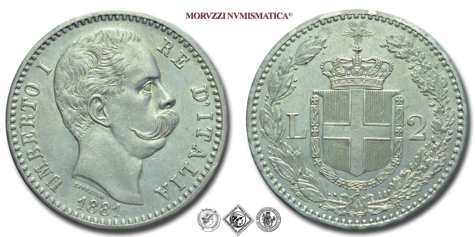 Regno d'Italia, UMBERTO I, 1878-1900, LIRE 2, 1881