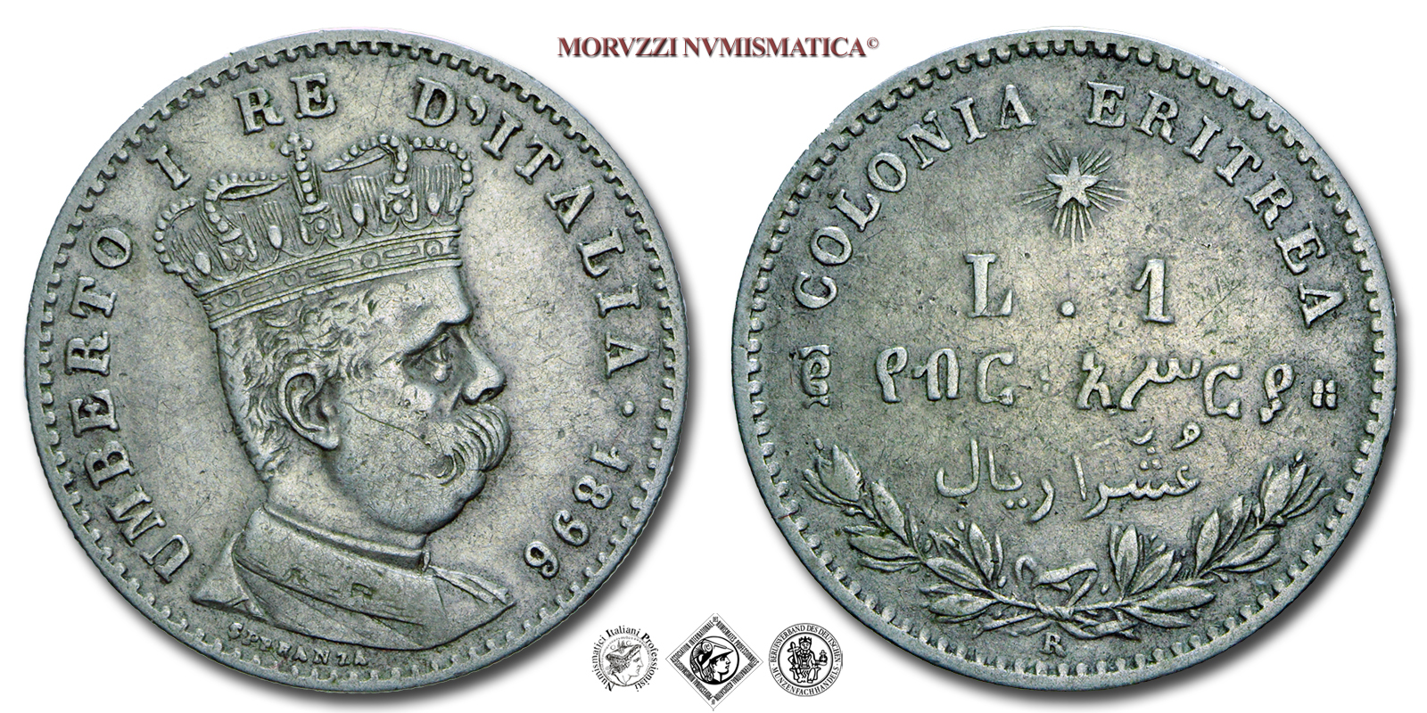 Regno d'Italia, Colonia Eritrea, UMBERTO I, 1 LIRA (1/5 di tallero), 1896, Zecca di Roma, ARGENTO, BB, (RR), (Pagani 636) / monete italiane moderne coloniali rare d'argento (moneta italiana moderna coloniale rara - Casa Savoia)