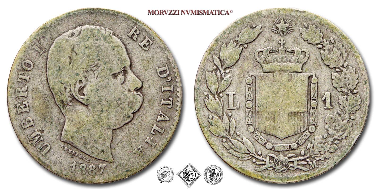 Regno d'Italia, UMBERTO I, 1 LIRA, 1887 M, Zecca di Milano, ARGENTO, MB, (Pagani 604) / monete italiane moderne d'argento (moneta italiana moderna da collezione - Casa Savoia)