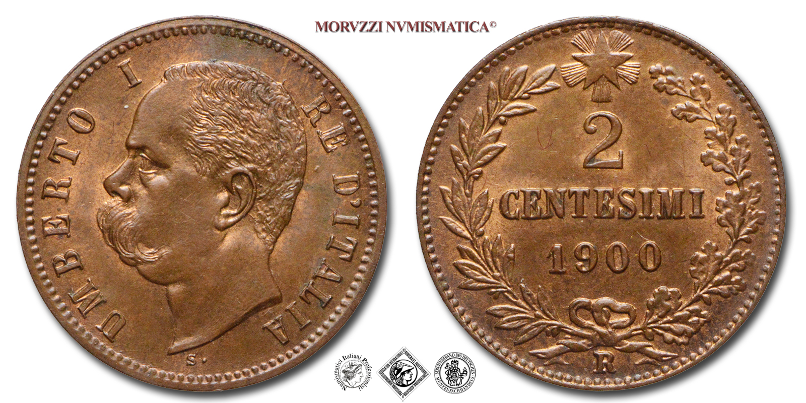 Regno d'Italia, UMBERTO I, CENTESIMI 2, Valore, 1900, Zecca di Roma, RAME, FDC, (Pagani 624) / monete italiane moderne (moneta italiana moderna da collezione - Casa Savoia)