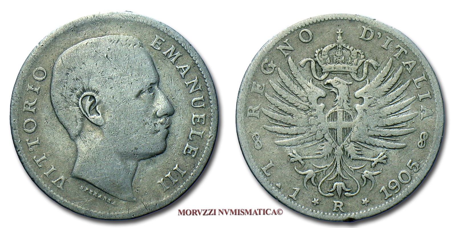 Regno d'Italia, VITTORIO EMANUELE III, 1 LIRA, 1905, Aquila Sabauda, zecca di Roma, ARGENTO, MB, (R), (Pagani 765) / monete italiane moderne rare d'argento (moneta italiana moderna rara da collezione - Casa Savoia)