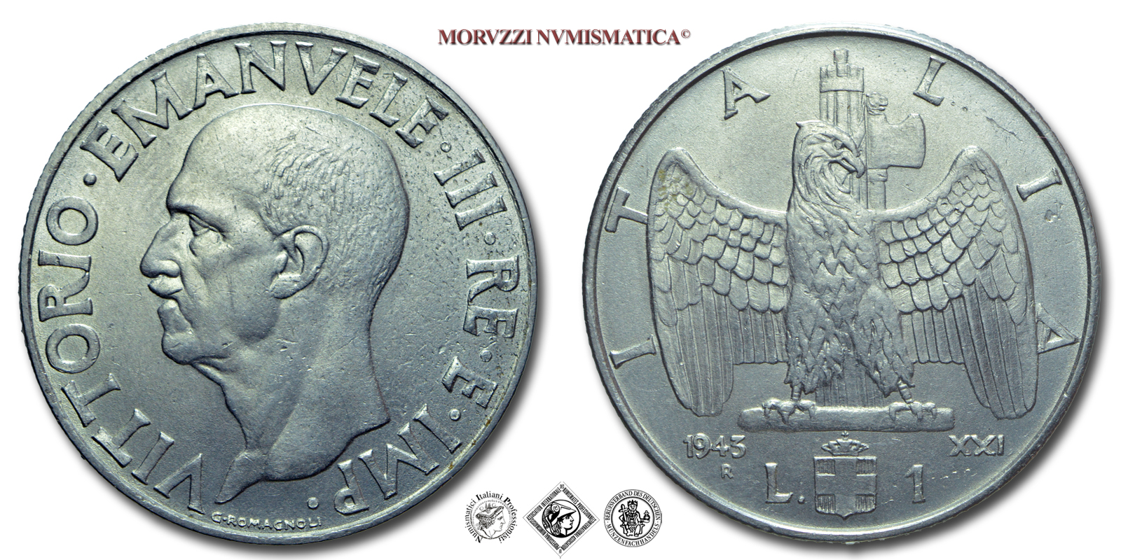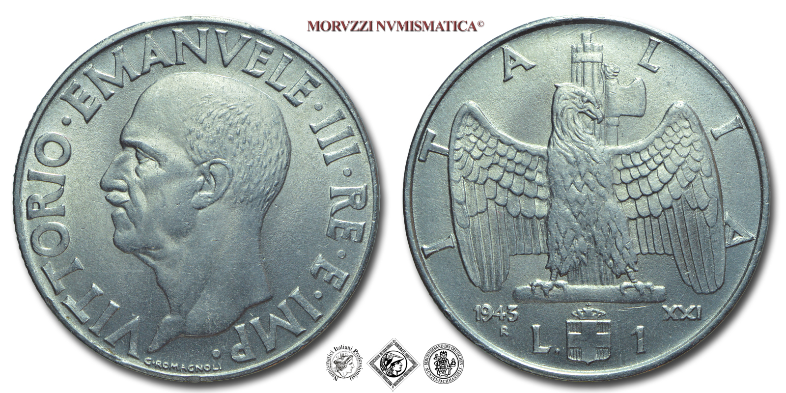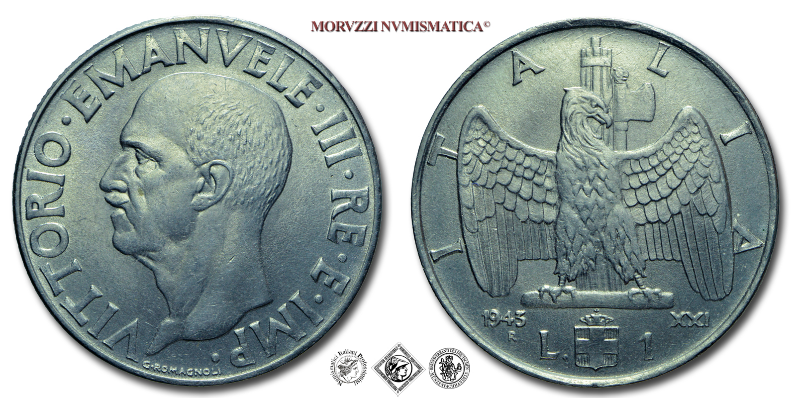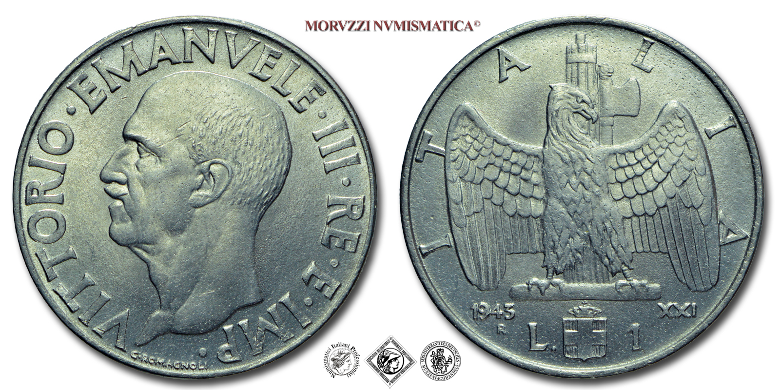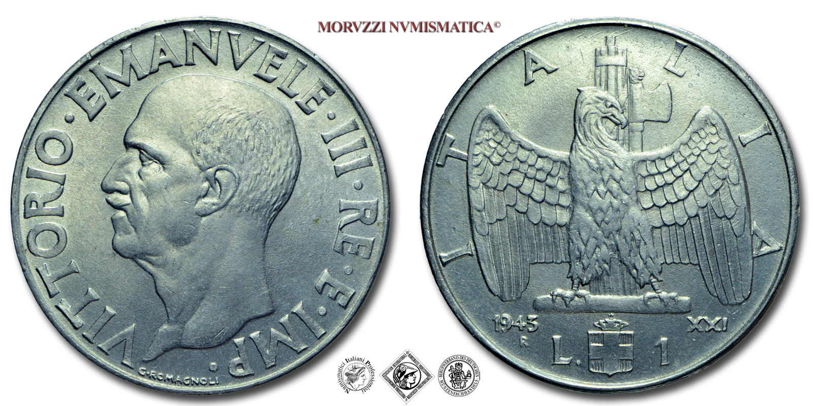 Regno d'Italia, VITTORIO EMANUELE III, LIRA, 1943 XXI, Impero, Zecca di Roma, ACMONITAL, SPL, (R), (Pagani 797) / monete italiane moderne rare (moneta italiana moderna rara da collezione - Casa Savoia)