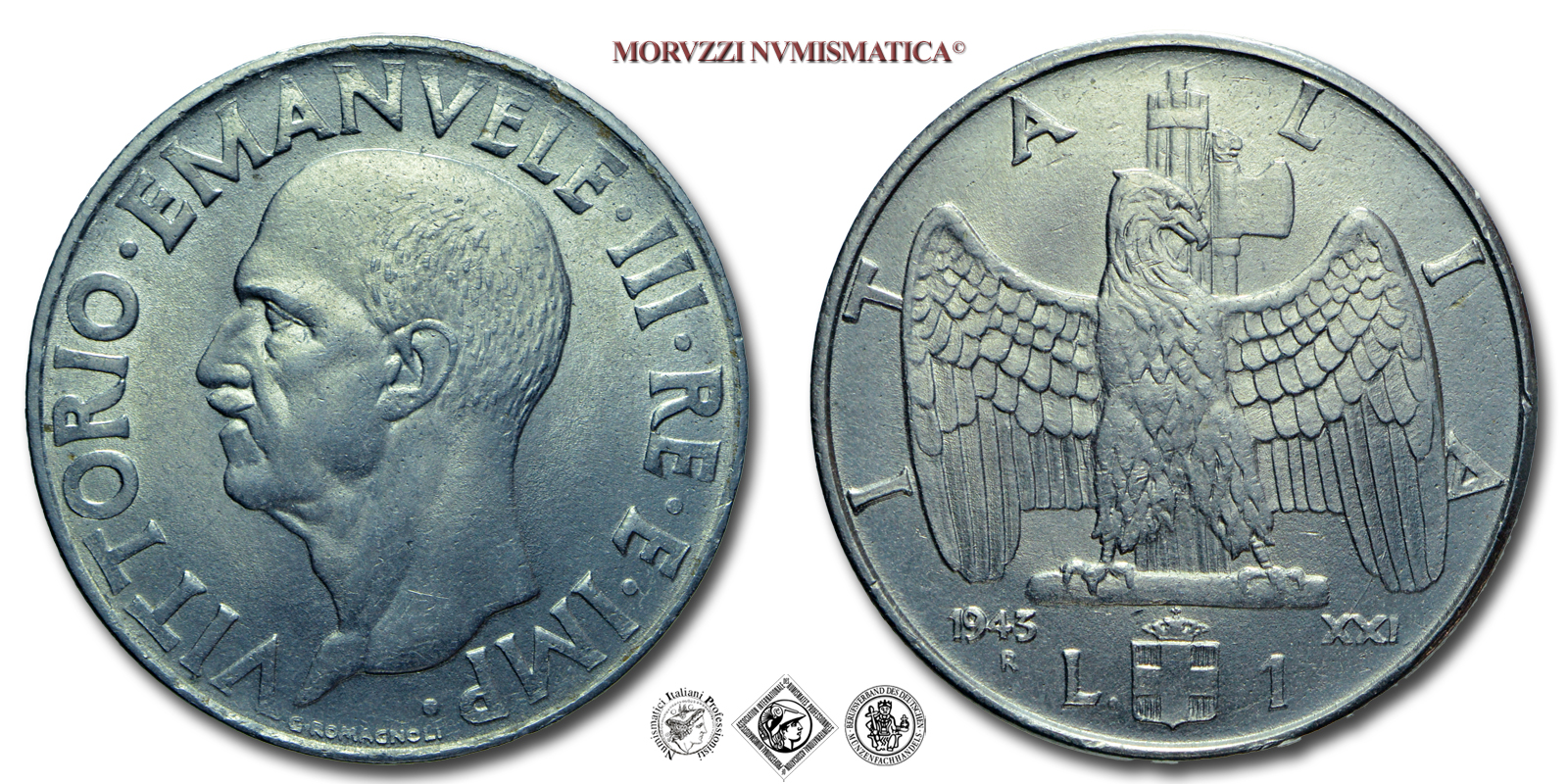 Regno d'Italia, VITTORIO EMANUELE III, 1 LIRA, 1943 XXI, Impero, Zecca di Roma, ACMONITAL, qFDC, (R), (Pagani 797) / monete italiane moderne rare (moneta italiana moderna rara da collezione - Casa Savoia)