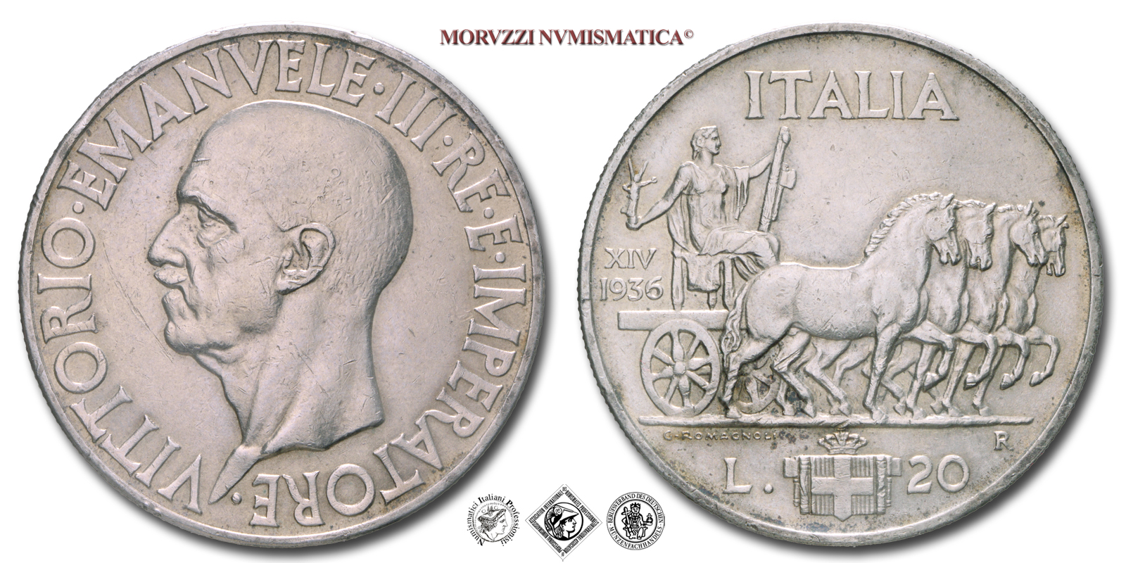 Regno d'Italia, VITTORIO EMANUELE III, 20 LIRE, 1936 XIV, Impero, Zecca di Roma, ARGENTO, mBB, (R), (Pagani 681) / monete italiane moderne rare d'argento (moneta italiana moderna rara da collezione - Casa Savoia)