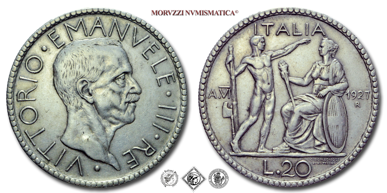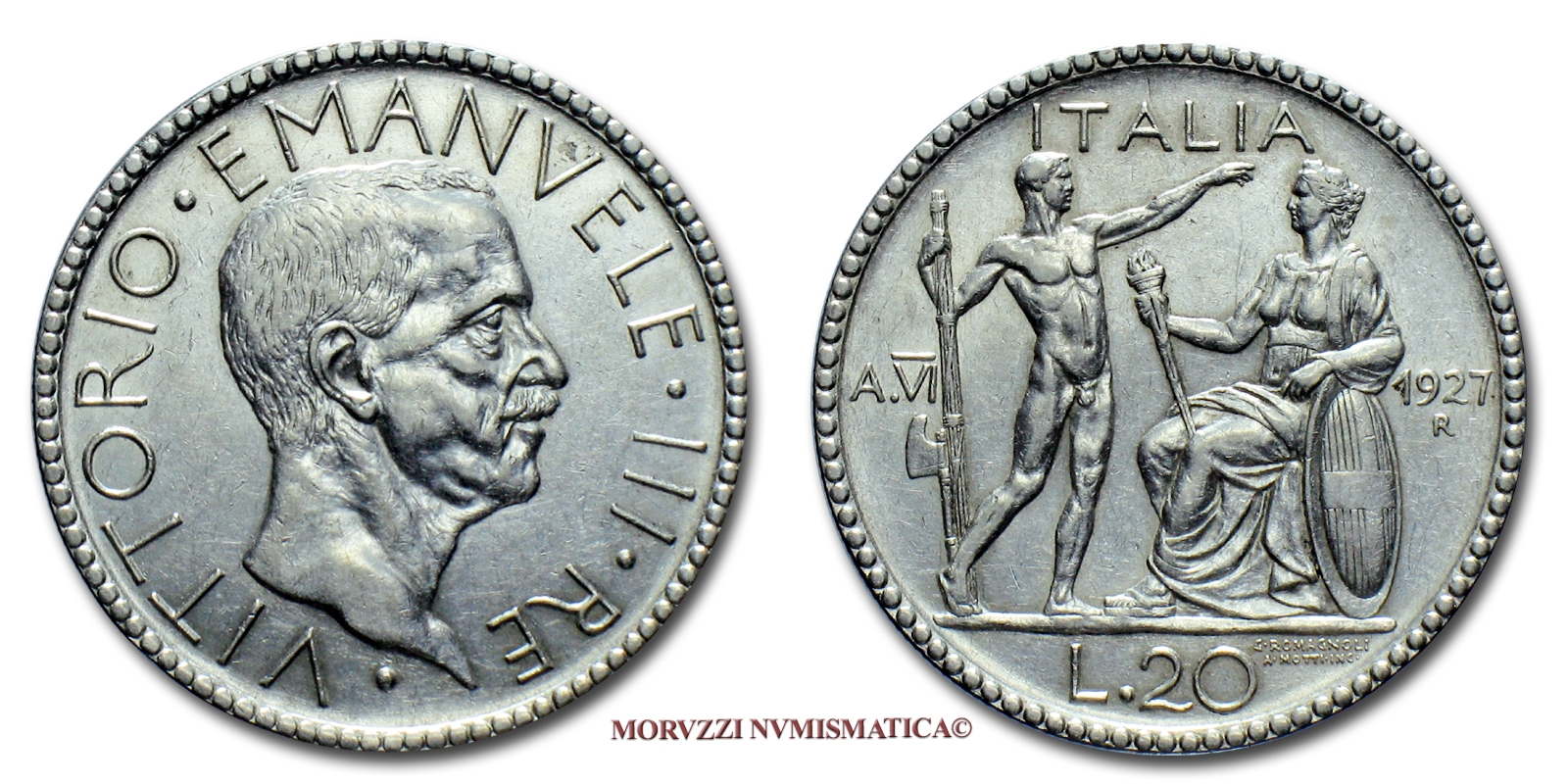 Regno d'Italia, VITTORIO EMANUELE III, 20 LIRE, 1927 A VI, Littore, zecca di Roma, ARGENTO, mBB, (Pagani 672) / monete italiane moderne (moneta d'argento Casa Savoia da collezione)