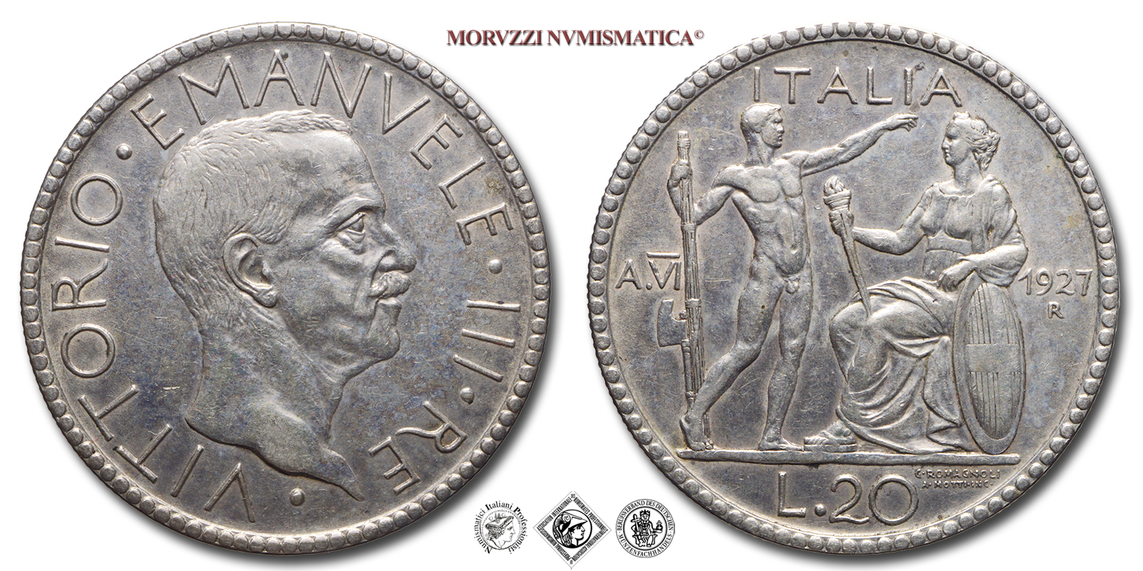 Regno d'Italia, VITTORIO EMANUELE III, LIRE 20, Littore, 1927 A VI, Zecca di Roma, ARGENTO, mBB, (Pagani 672) / monete italiane moderne d'argento (moneta italiana moderna da collezione - Casa Savoia)