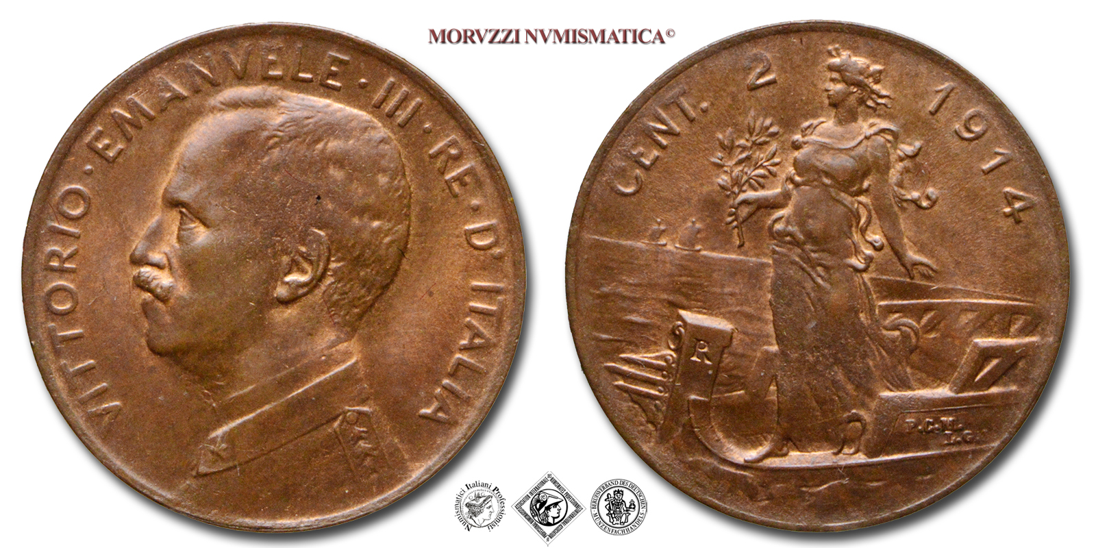 Regno d'Italia, VITTORIO EMANUELE III, CENTESIMI 2, Italia su prora, 1914, Zecca di Roma, RAME, qFDC, (Pagani 936) / monete italiane moderne (moneta italiana moderna da collezione - Casa Savoia)
