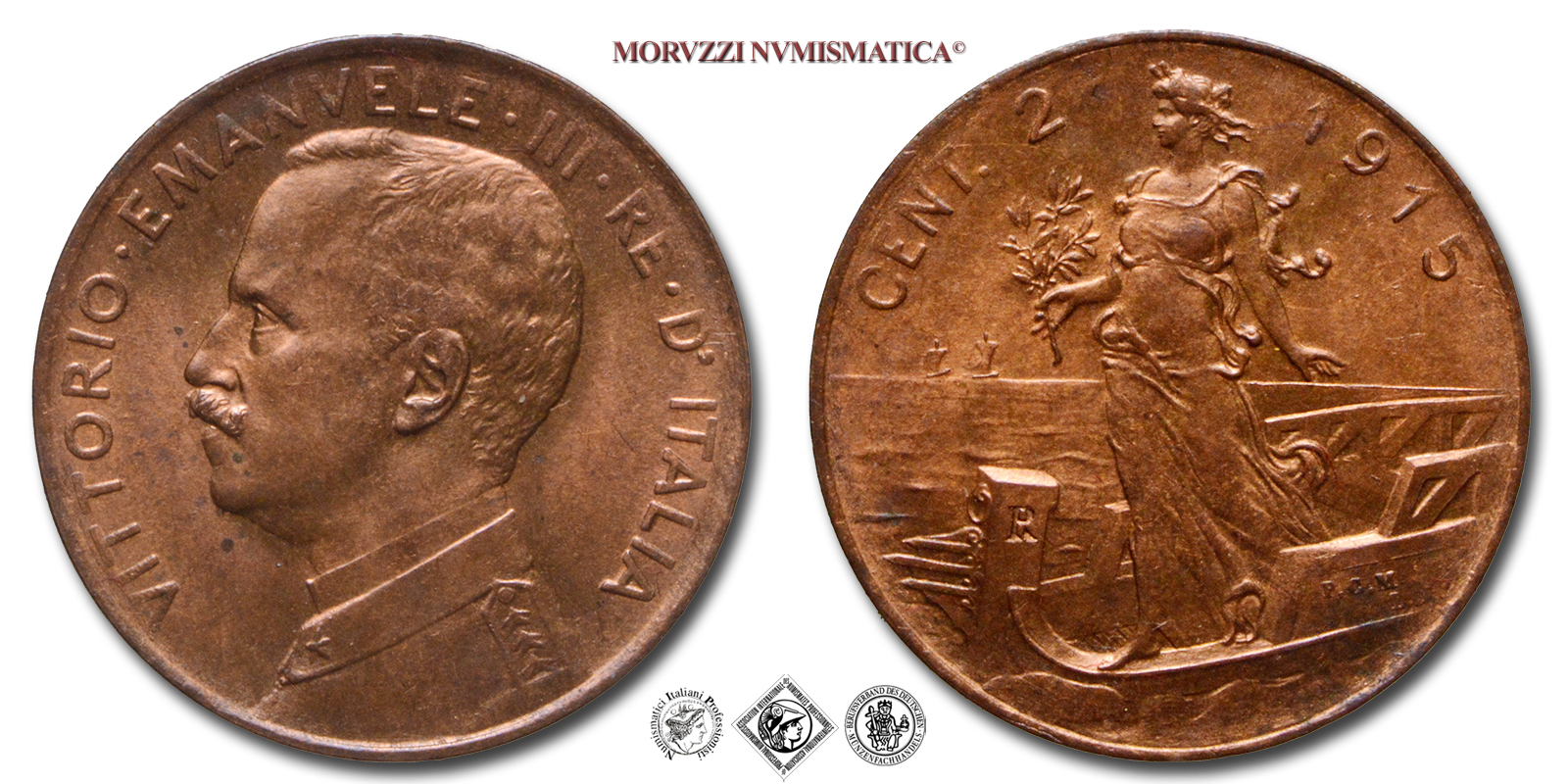 Regno d'Italia, VITTORIO EMANUELE III, CENTESIMI 2, Italia su prora, 1915, Zecca di Roma, RAME, FDC, (Pagani 937) / monete italiane moderne (moneta italiana moderna da collezione - Casa Savoia)