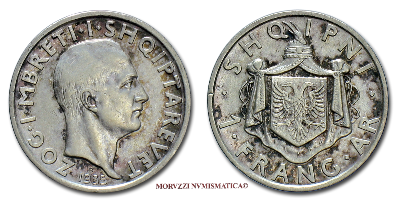 Albania, AHMED BEY ZOGU, FRANGA, 1935, ARGENTO, mBB, (KM 16) / SILVER WORLD COINS (monete mondiali d'argento)