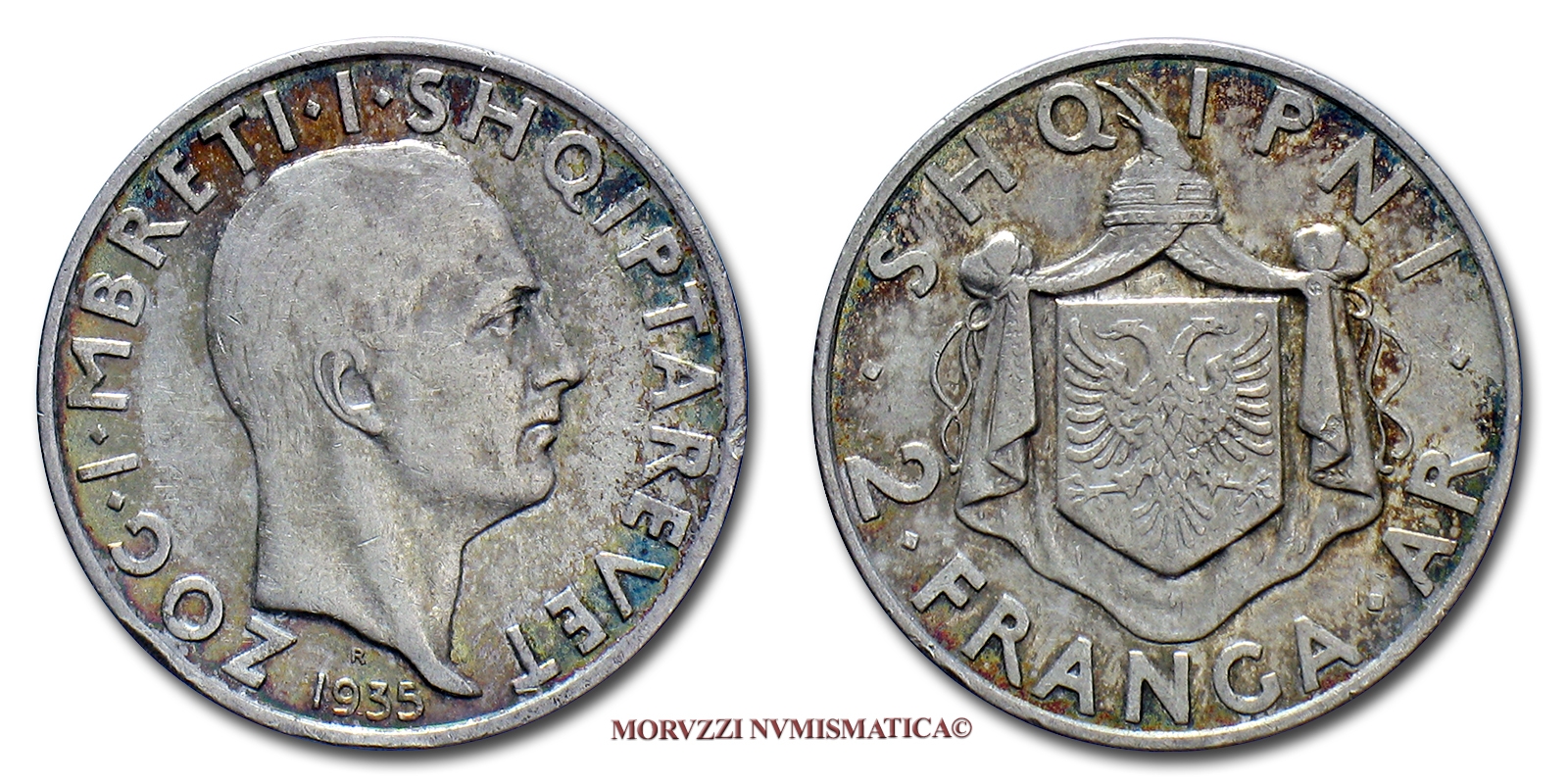 Albania, AHMED BEY ZOGU, 2 FRANGA, 1935, ARGENTO, BB, (KM 17) / SILVER WORLD COINS (monete mondiali d'argento)