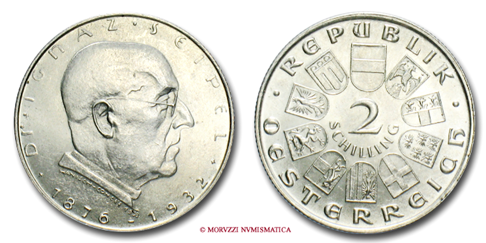 Austria, REPUBBLICA, 2 SCELLINI, (1933), Anniversario della morte di Ignaz Seipel, zecca di Vienna, ARGENTO, qFDC, (KM 2849) / Republik Österreich 2 SCHILLING Tod von Dr. Ignaz Seipel Wien Silbermünzen (monete mondiali moderne d'argento da collezione)