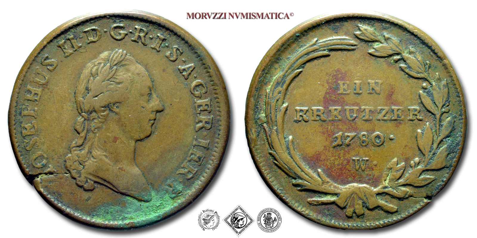 Austria, GIUSEPPE II, KREUTZER, 1780 W, Zecca di Vienna, RAME, BB, (KM 2056) / Joseph II. Kaiser des Heiligen Römischen Reiches EIN KREUTZER Wien Österreichische Münzen (monete mondiali europee austriache moderne - moneta mondiale europea austriaca)