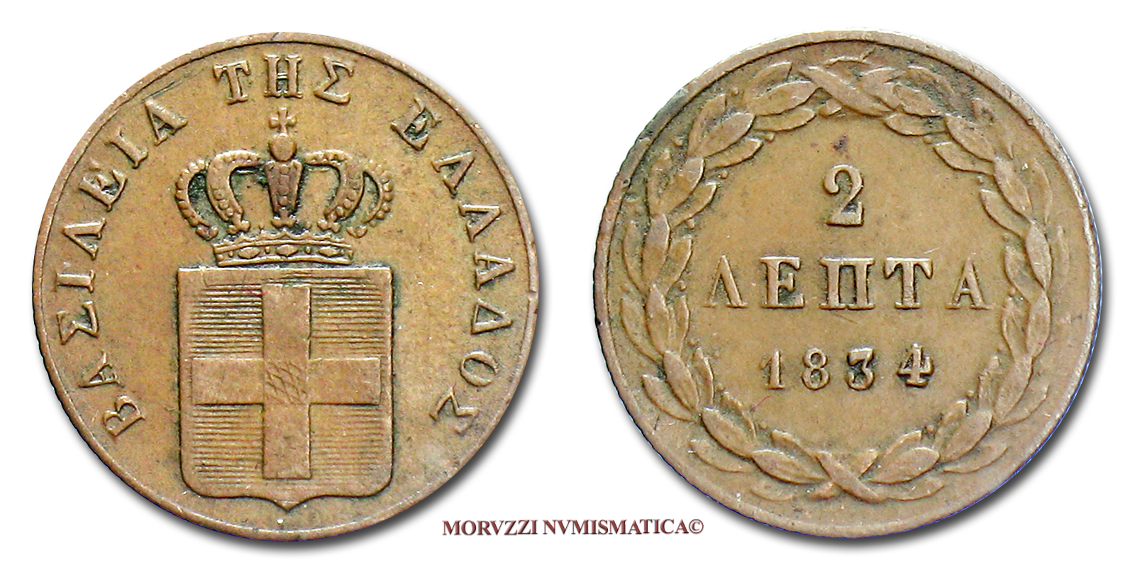 Grecia,OTTONE,1832-1862,LEPTA 2,1834