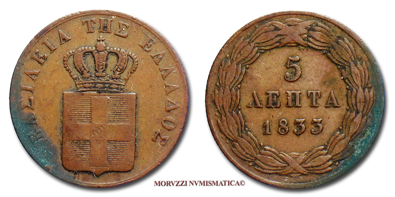 Grecia,OTTONE,1832-1862,LEPTA 5,1833