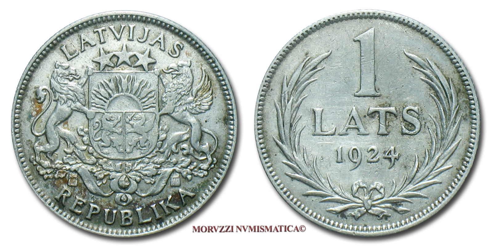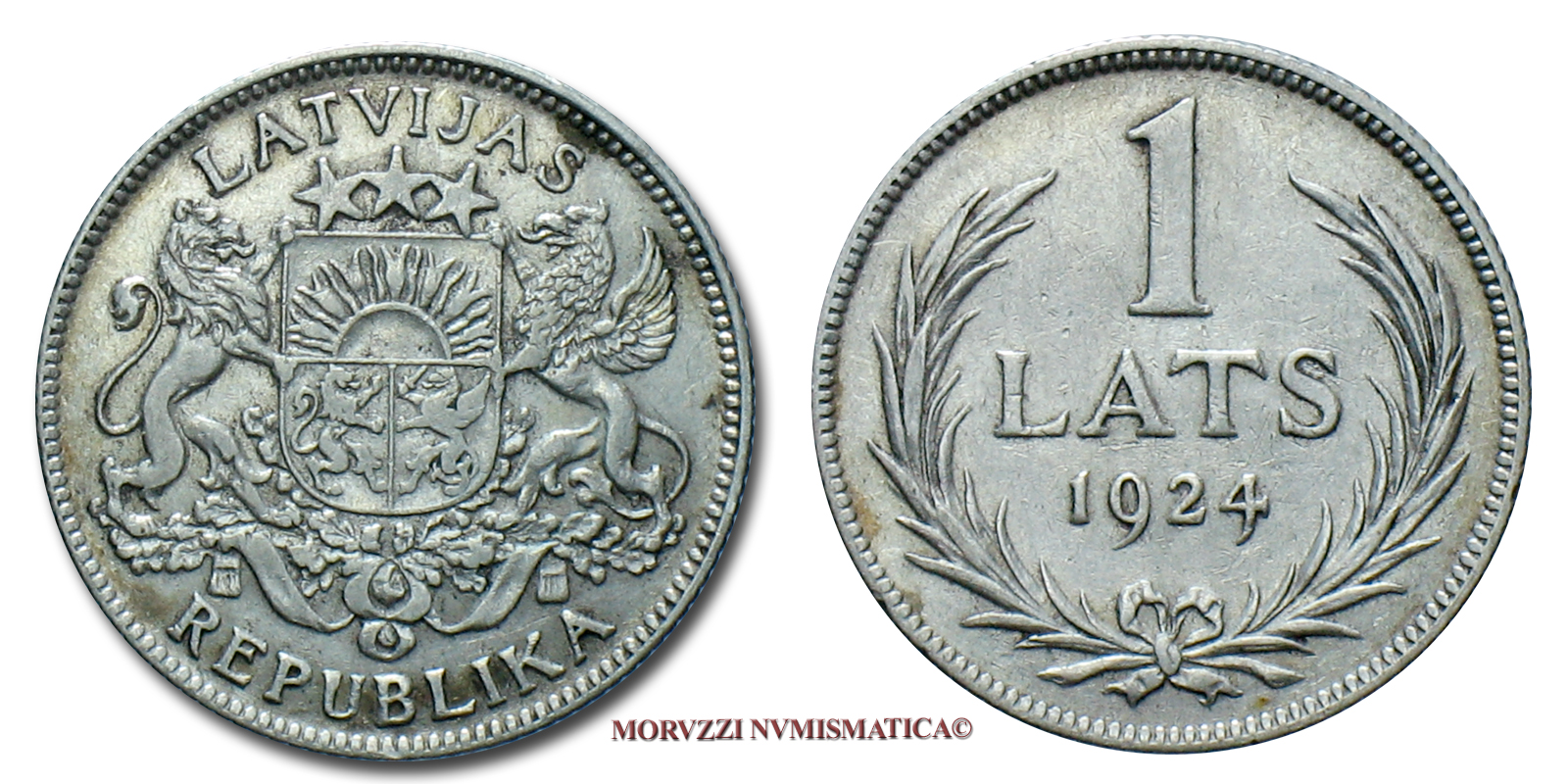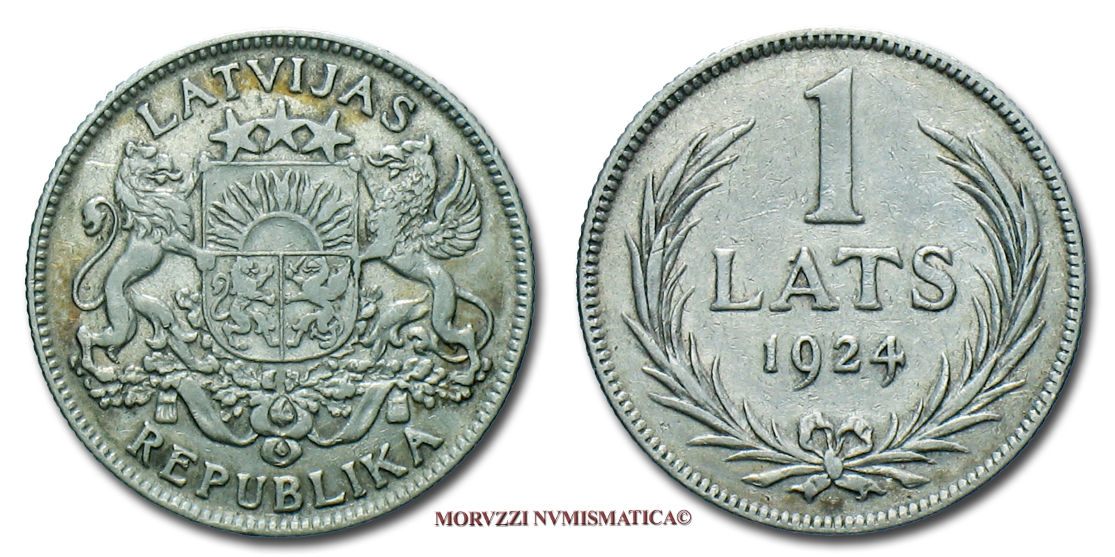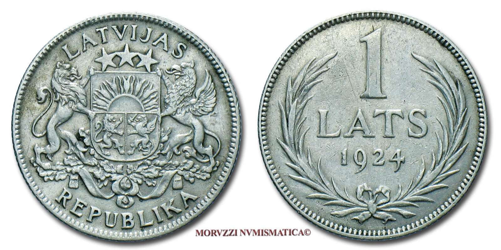 Lettonia, REPUBBLICA, 1 LATS, 1924, LATVIJAS REPUBLIKA, zecca di Londra, ARGENTO, BB, (KM 7) / monete mondiali europee moderne d'argento (WORLD SILVER COINS - moneta mondiale europea moderna da collezione)