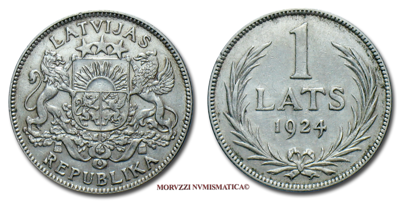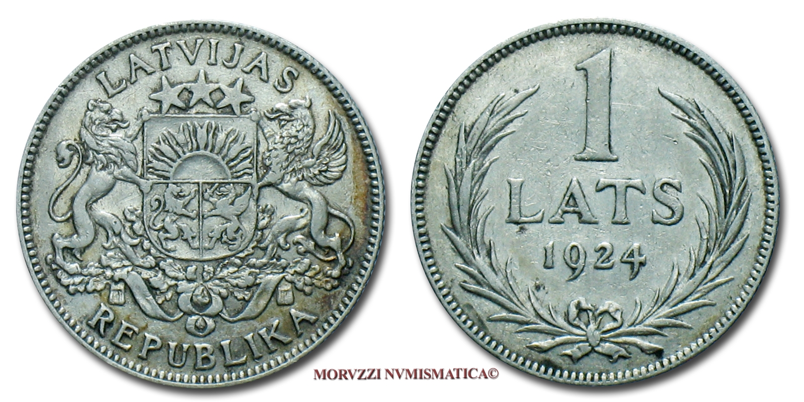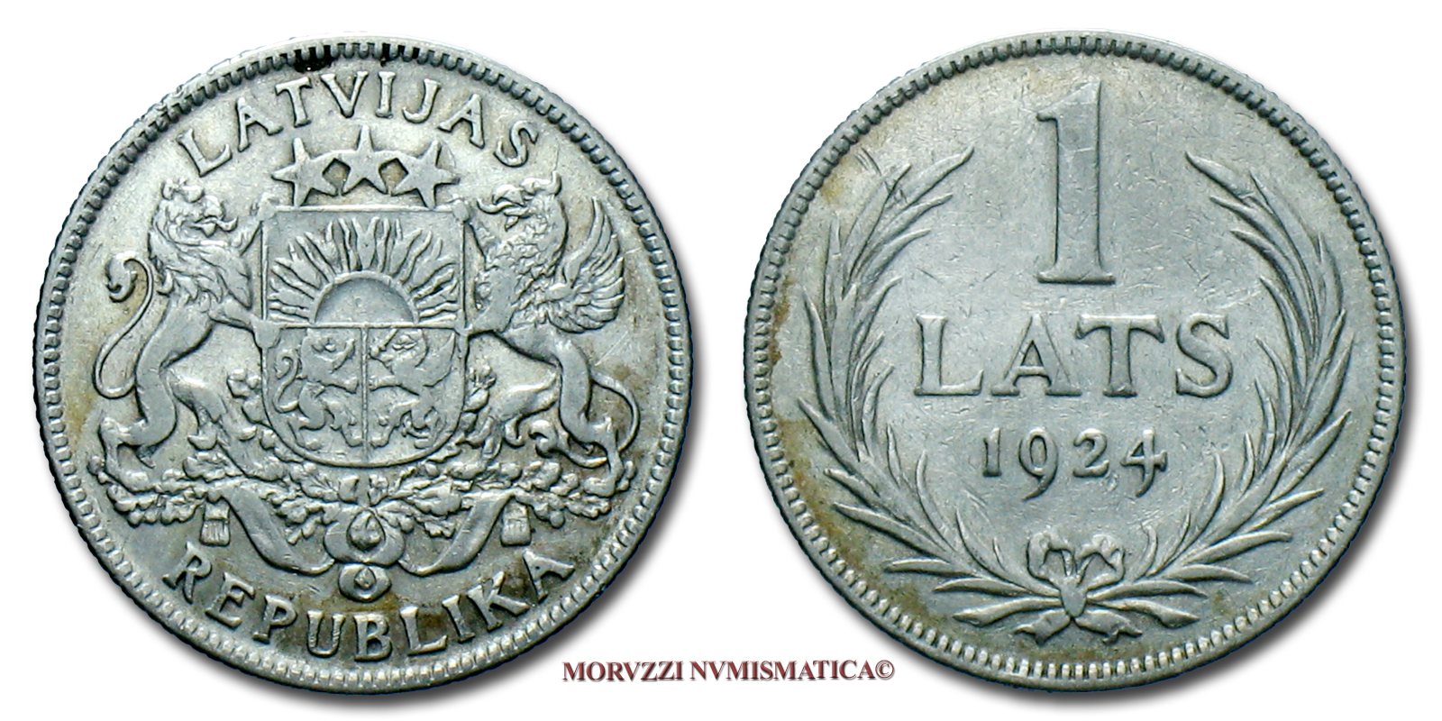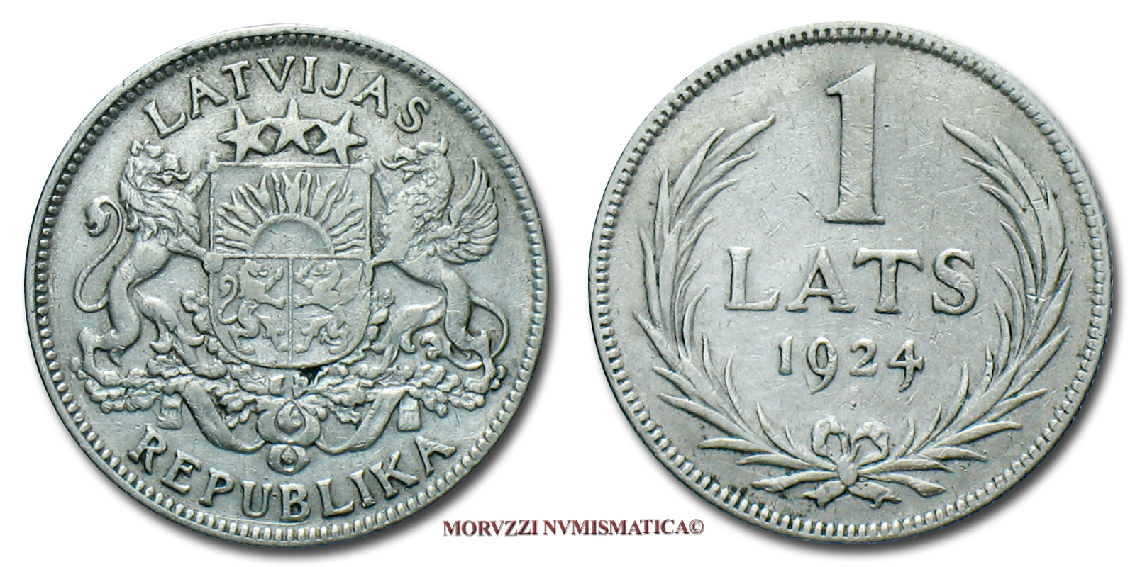 Lettonia, REPUBBLICA, 1 LATS, 1924, LATVIJAS REPUBLIKA, zecca di Londra, ARGENTO, BB, (KM 7) / monete mondiali europee moderne d'argento (WORLD SILVER COINS - moneta mondiale europea moderna da collezione)